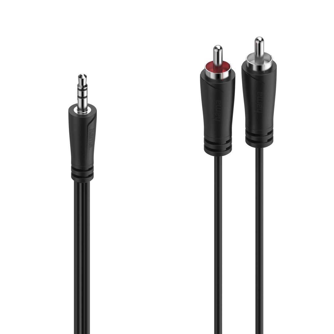 - כבל שמע איכותי מבית Hama באורך 1.5 מטר – עם חיבור 3.5 מ״מ סטריאו בצד אחד ו-2 תקעי RCA (Cinch) בצד השני