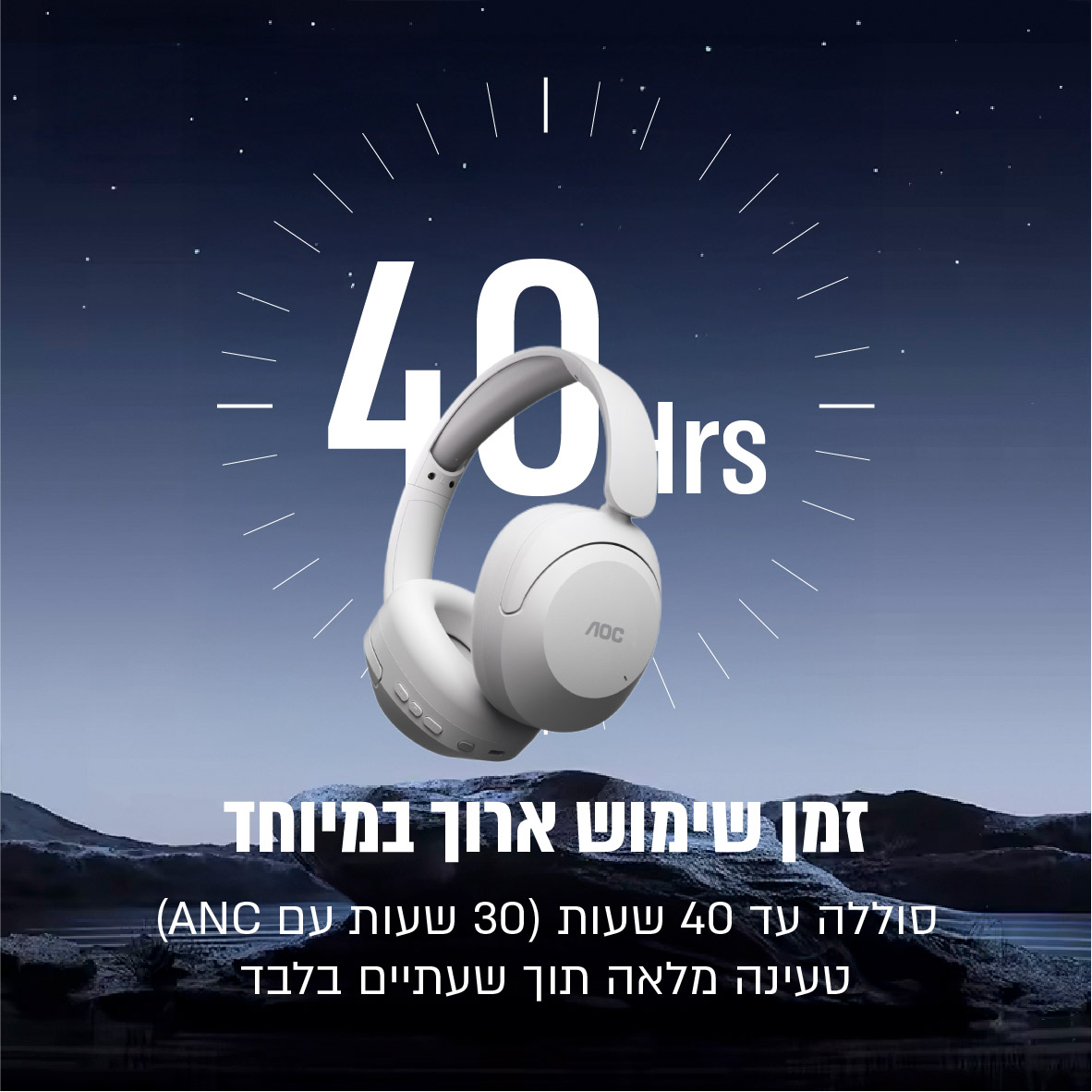 • זמן נגינה: מעל 40 שעות (ANC כבוי) / כ-30 שעות (ANC פעיל)