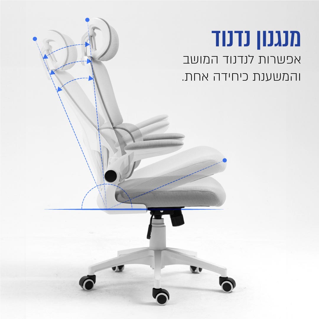 - גב רשת גמיש ואוורירי בד רשת נוח במיוחד ונעים למגע, גמיש לפי תנוחת הגב ומפזרת את העומס