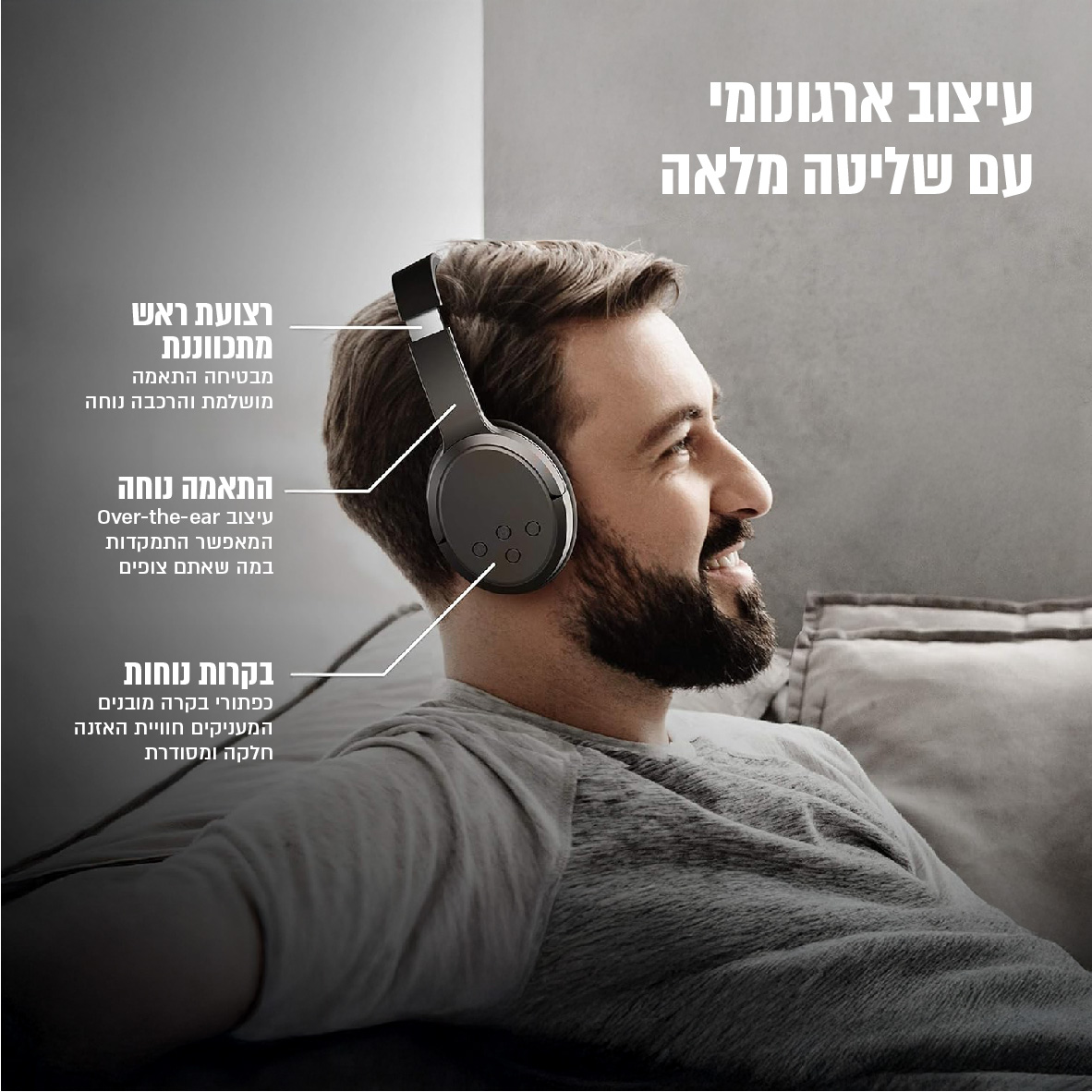 - שליטה מלאה על עוצמת שמע, מצבי שמע, כיבוי והפעלה באמצעות כפתורים על דופן האוזנייה