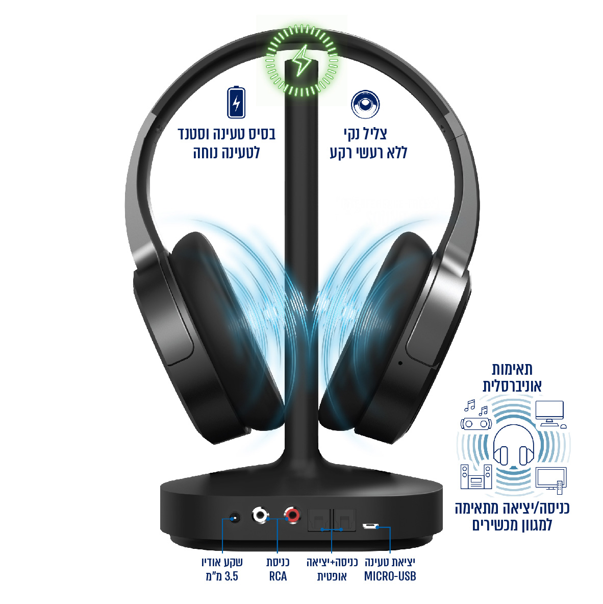 אוזניות אלחוטיות לטלוויזיה בטכנולוגיית RF לצלילים חדים במיוחד