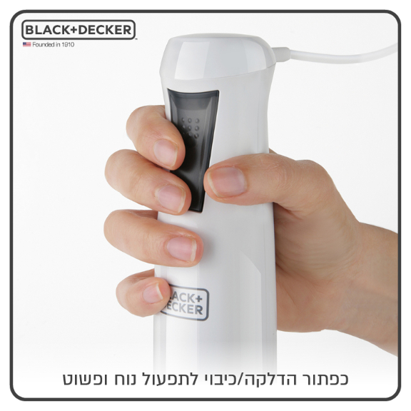 - עיצוב ארגונומי וקומפקטי המותאם לכף היד, כפתור הדלקה/כיבוי קל לתפעול לעבודה נוחה וללא מאמץ