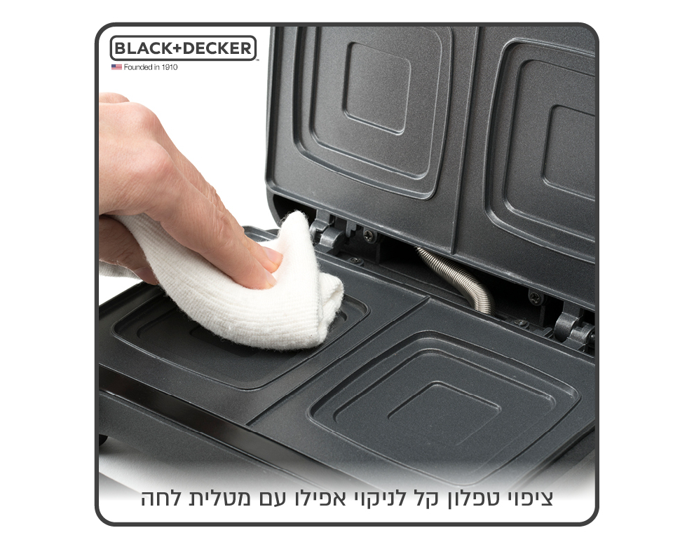 - משטח צלייה בסגנון ריבוע מיוחד, לסגירה מוחלטת של הכריך ומניעת נזילות של גבינה ורוטב.