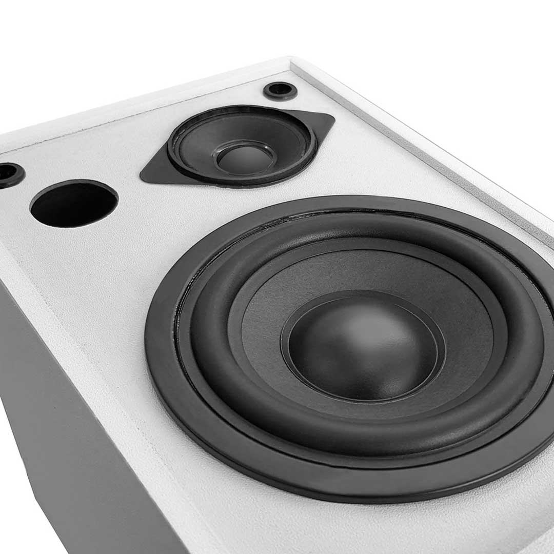 - זוג רמקולים 2-WAY, בהספק של 2x25W רמקול אקטיבי + רמקול פסיבי מגבר מובנה ביחידת הרמקול, חוסך את הצורך ברסיבר נוסף ומאפשר התקנה קלה ומהירה בוררי כיוון בס, טרבל ועוצמת שמע ראשי מאפשר התאמה אישית של הסאונד בעלי פיזור סאונד דינמי ועשיר שנשמע בכל חלל החדר כניסת RCA לחיבור ישיר של הסמארטפון, טאבלט, וכל מקור מוזיקה אחר כניסת כרטיס זיכרון USB – ניגון מוזיקה והקלטות מוכנות מכרטיס זיכרון מבנה הרמקול – תיבת עץ אקוסטית למתן ווקאלית ומוזיקלית בחדרים מתאים להתקנה ב – כיתות, חדרי ישיבות, חדרי הרצאות וכנסים, מוסדי וציבורי מגיע עם 2 מתקני תליה קלים ונוחים במיוחד, עשה זאת בעצמך גימור – לבן מט עם גריל בד שחור