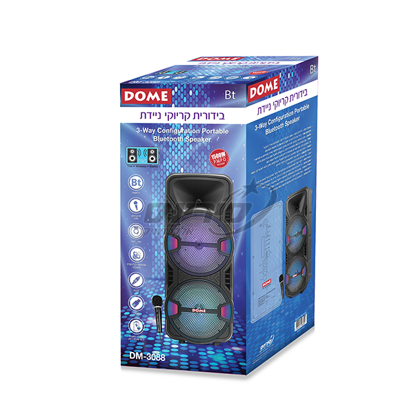 - סוללה נטענת – עם קיבולת 1800mAh לשימוש ברמקול באופן נייד לאורך שעות