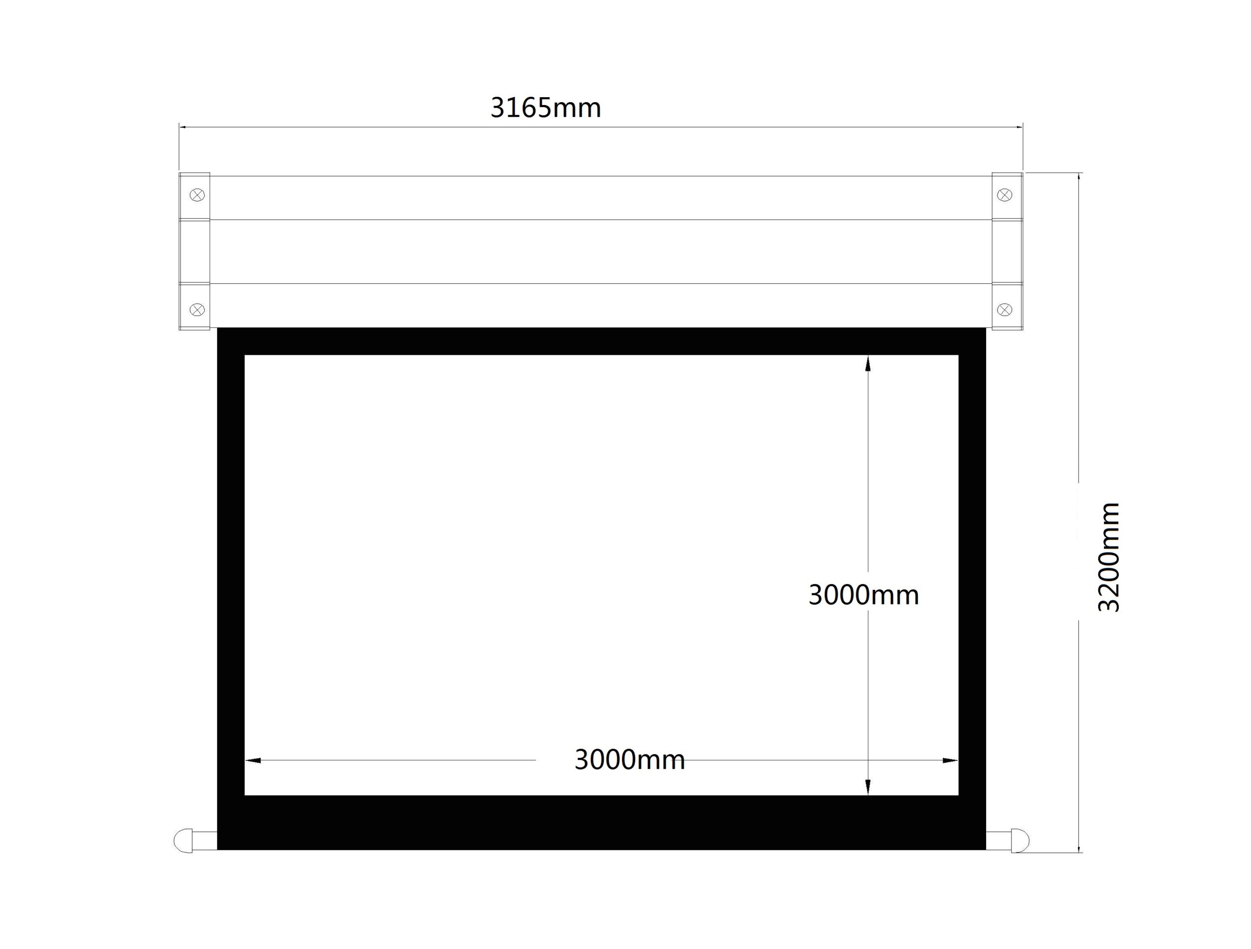 - מסך בגודל מקסימלי -167" יחס גובה-רוחב: 1:1 סוג הבד - לבן מט מידות התיבה ג/ע/א-317X8X8 מידות המסך-300X300 ס"מ