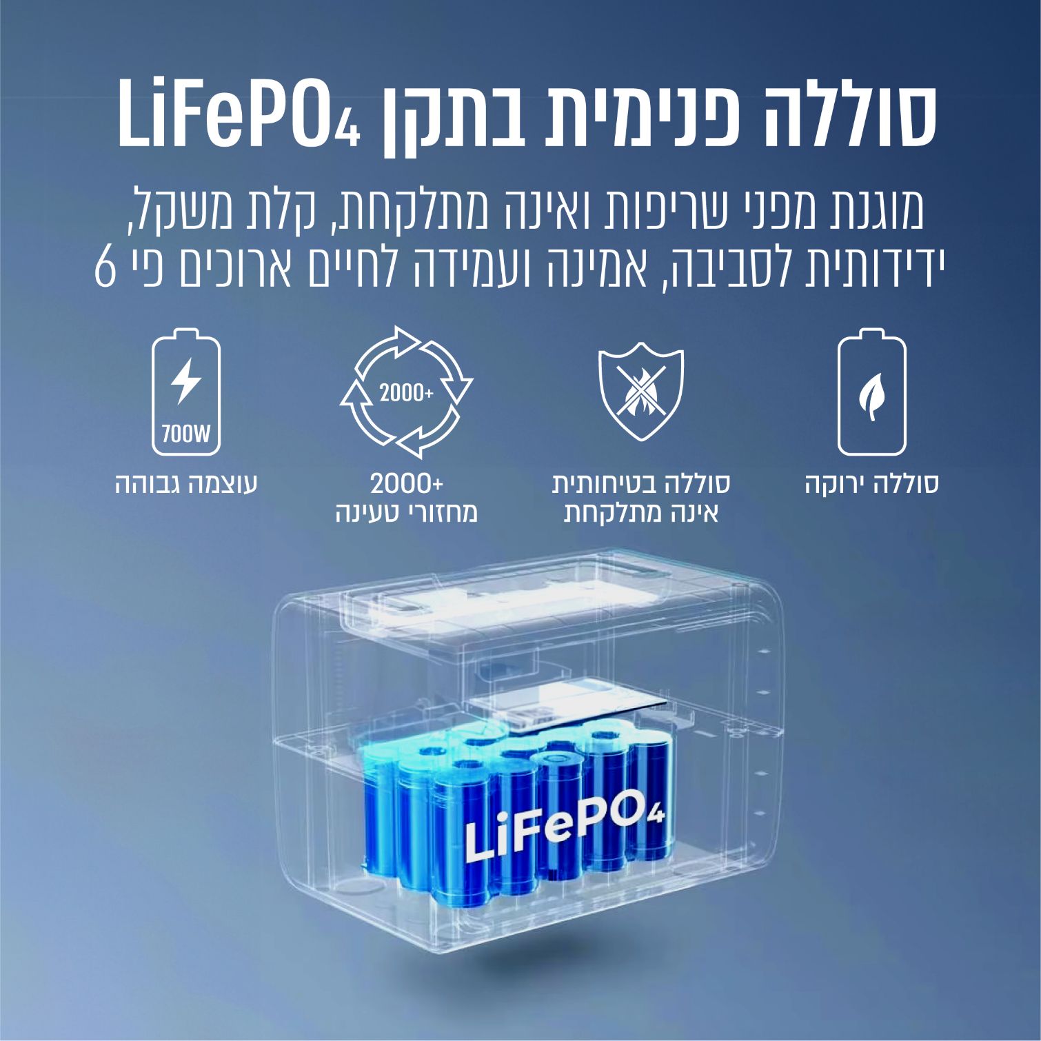 - סוג סוללה: סוללת ליתיום בתקן LiFePO4