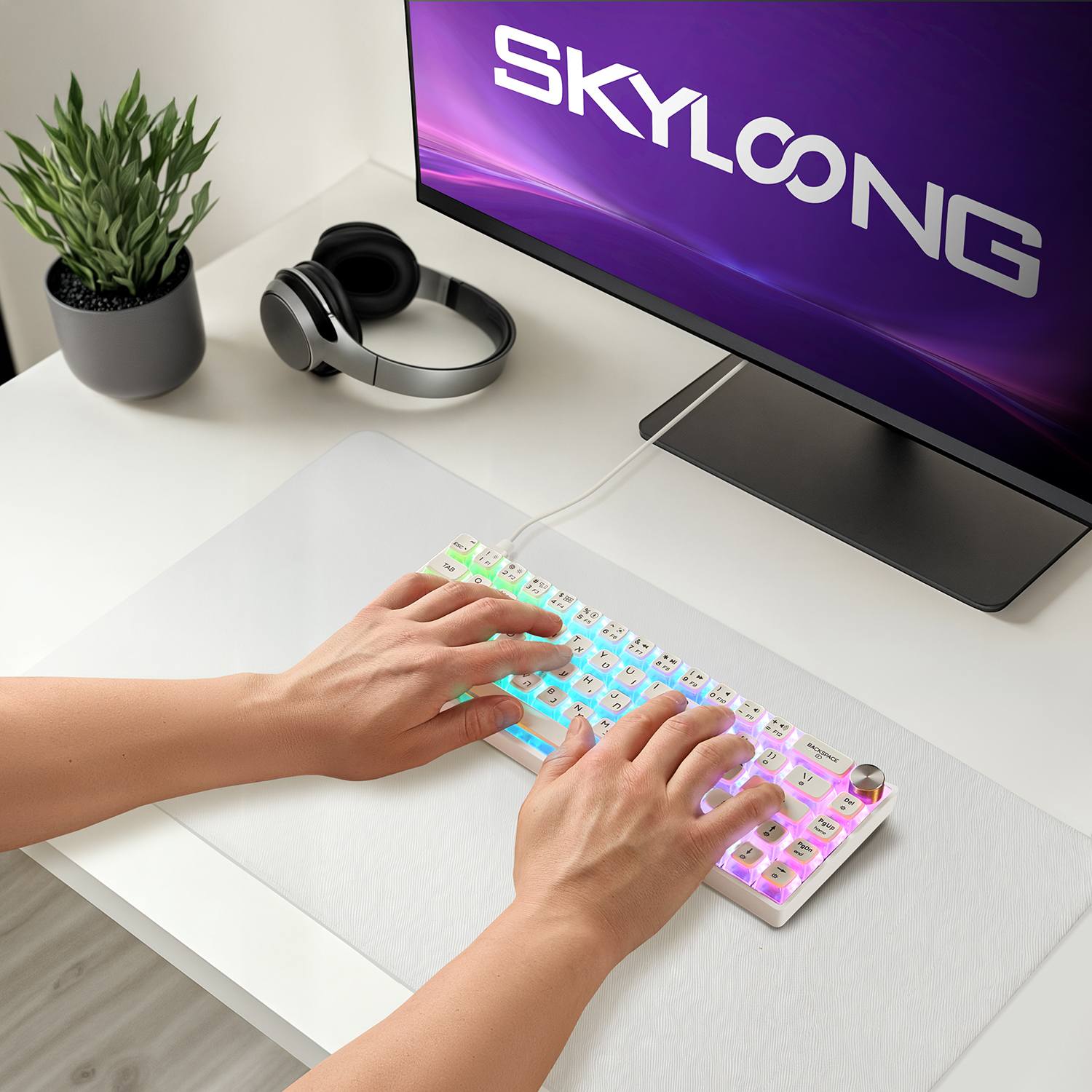 מקלדת מכאנית קומפקטית עם תאורת RGB, צבע לבן