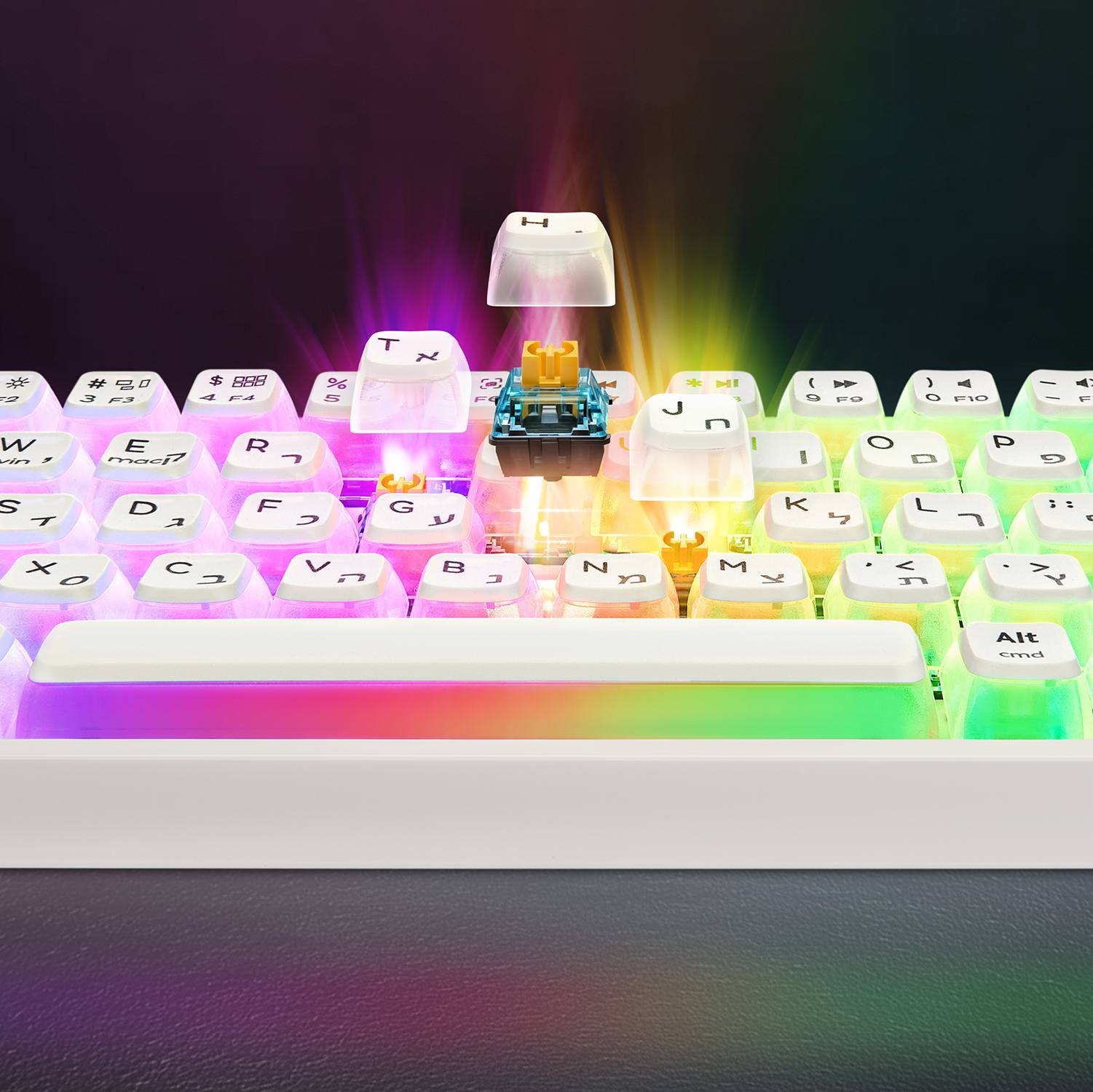- מתגים Hot-Swappable – החלפת מתגים מהירה ללא הלחמה לכל סגנון משחק