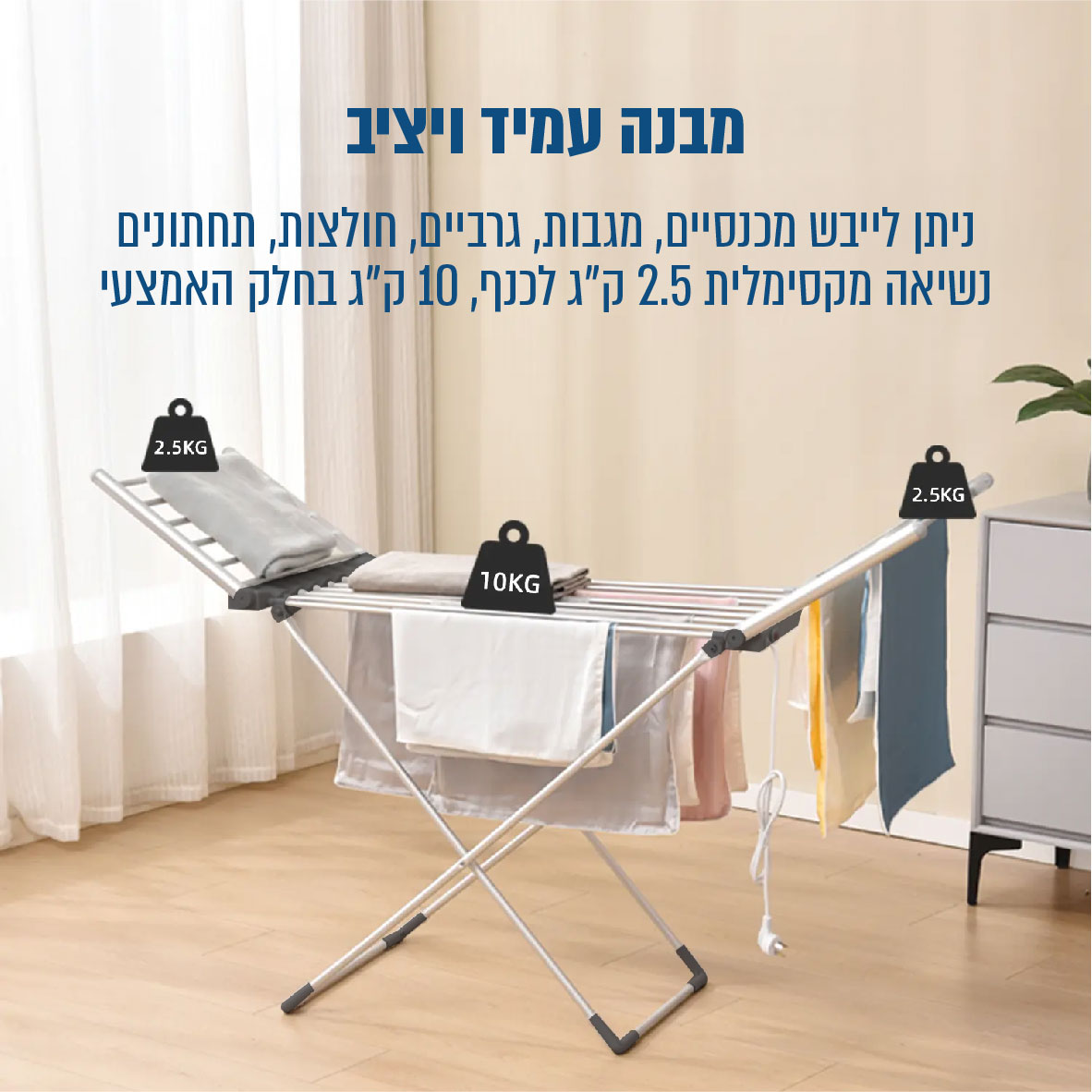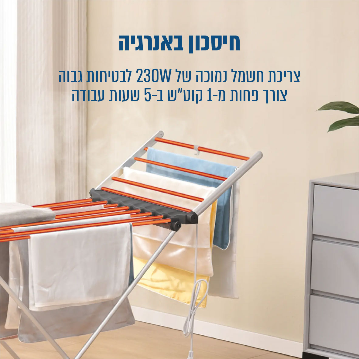 מתלה כביסה חשמלי 230W מתקפל,חסכוני ובטוח גם לבדים עדינים