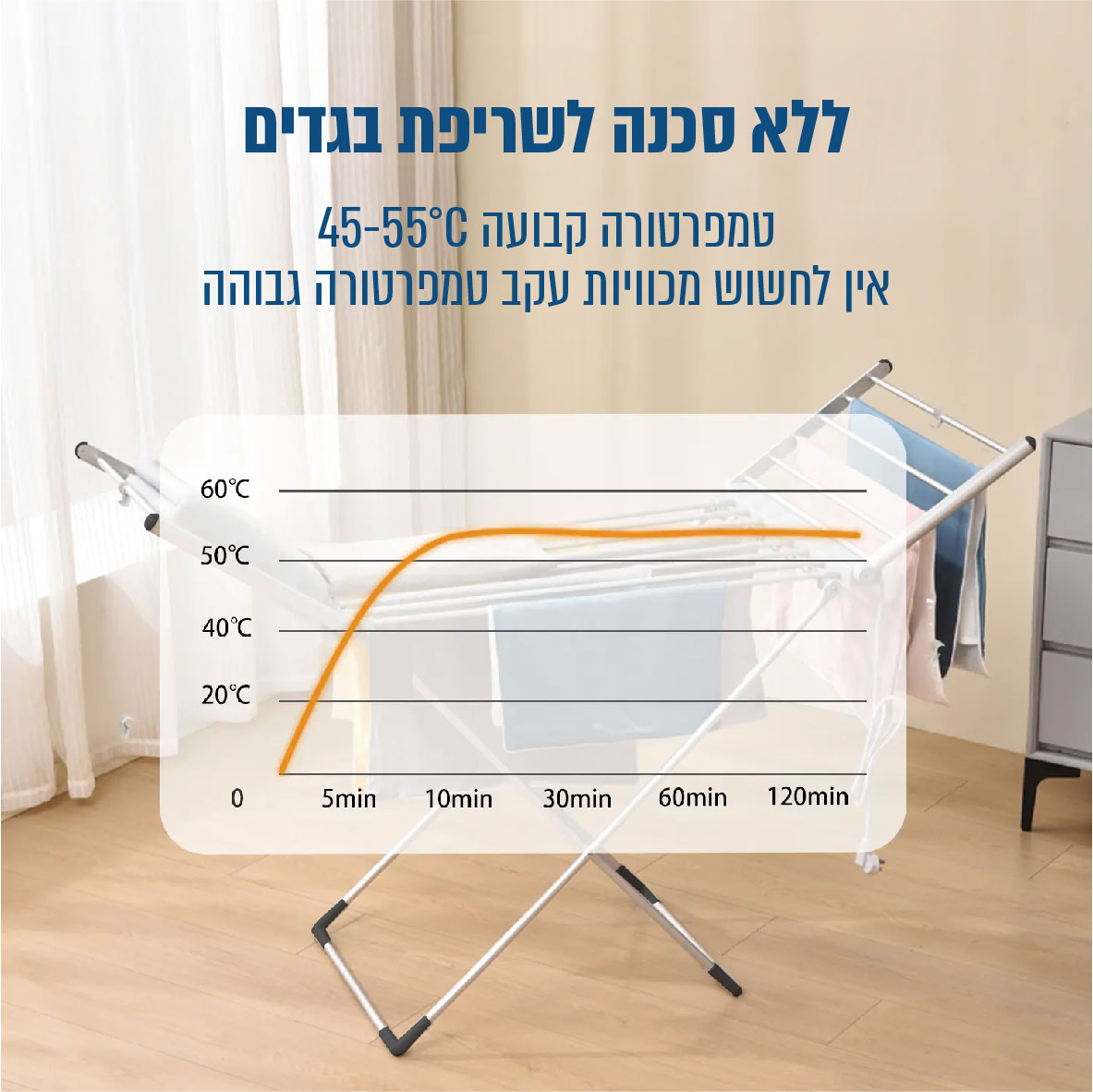 • מייבש בגדים חשמלי עם כנפיים נפתחות, חכם ומתקדם, שפועל בטכנולוגיה שקטה וחסכונית