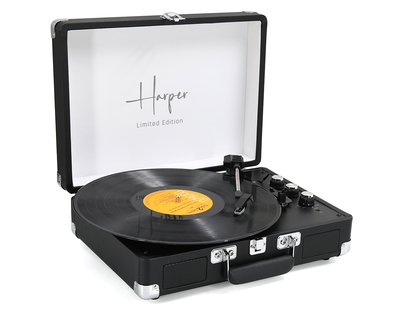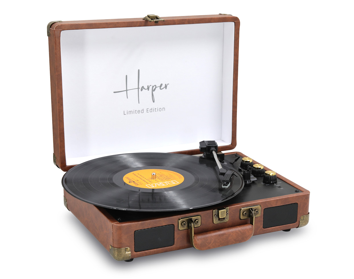 - רמקולים סטריאו מובנים בתוך הפטיפון לשמיעת התקליטים ללא צורך בחיבורים נוספים