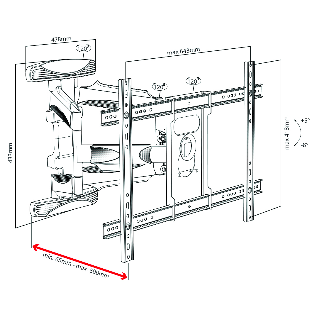 - יחידת זרוע מתכווננת להרחקת מסך מהקיר בקלות ובמהירות