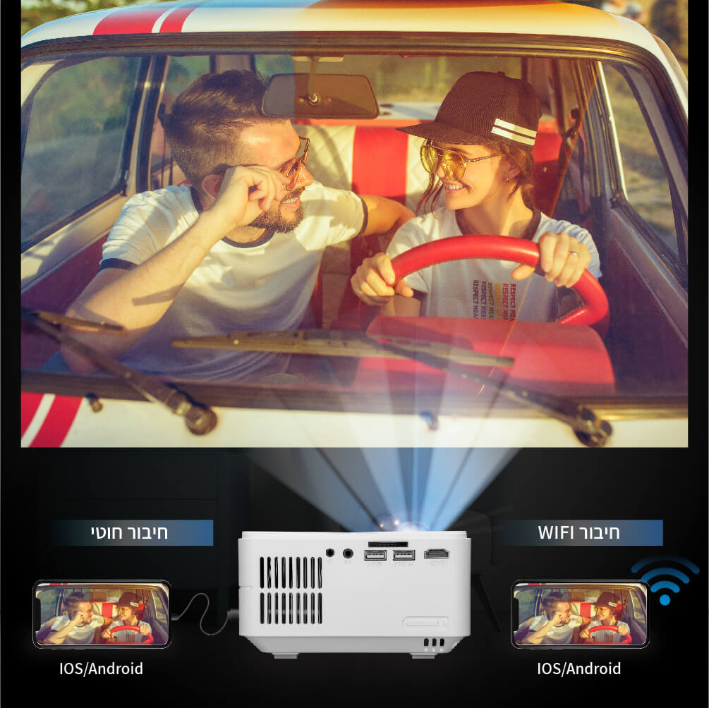• מקרן וידאו לחוויית צפייה מושלמת של קולנוע ביתי, למידה מהבית וצפייה באירועי ספורט