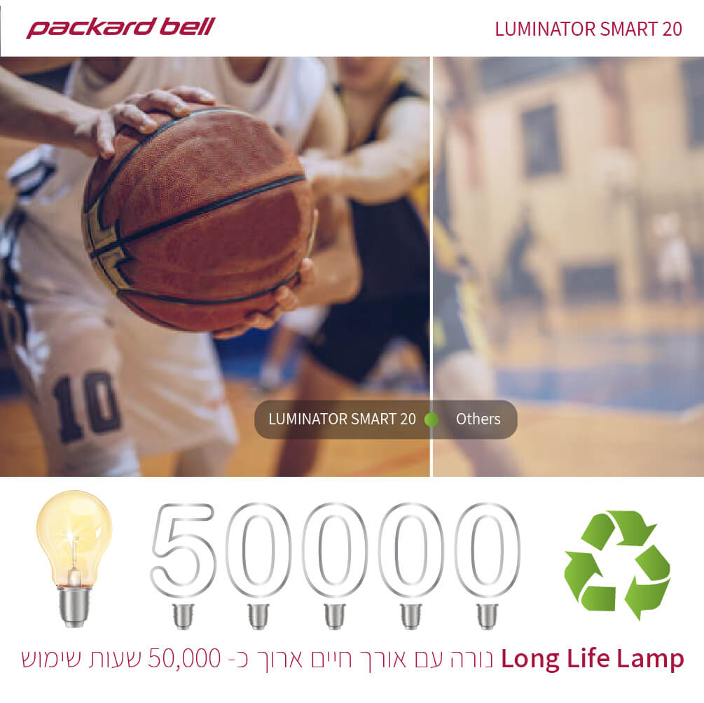 • Long Life Lamp נורה עם אורך חיים ארוך במיוחד כ- 50,000 שעות שימוש