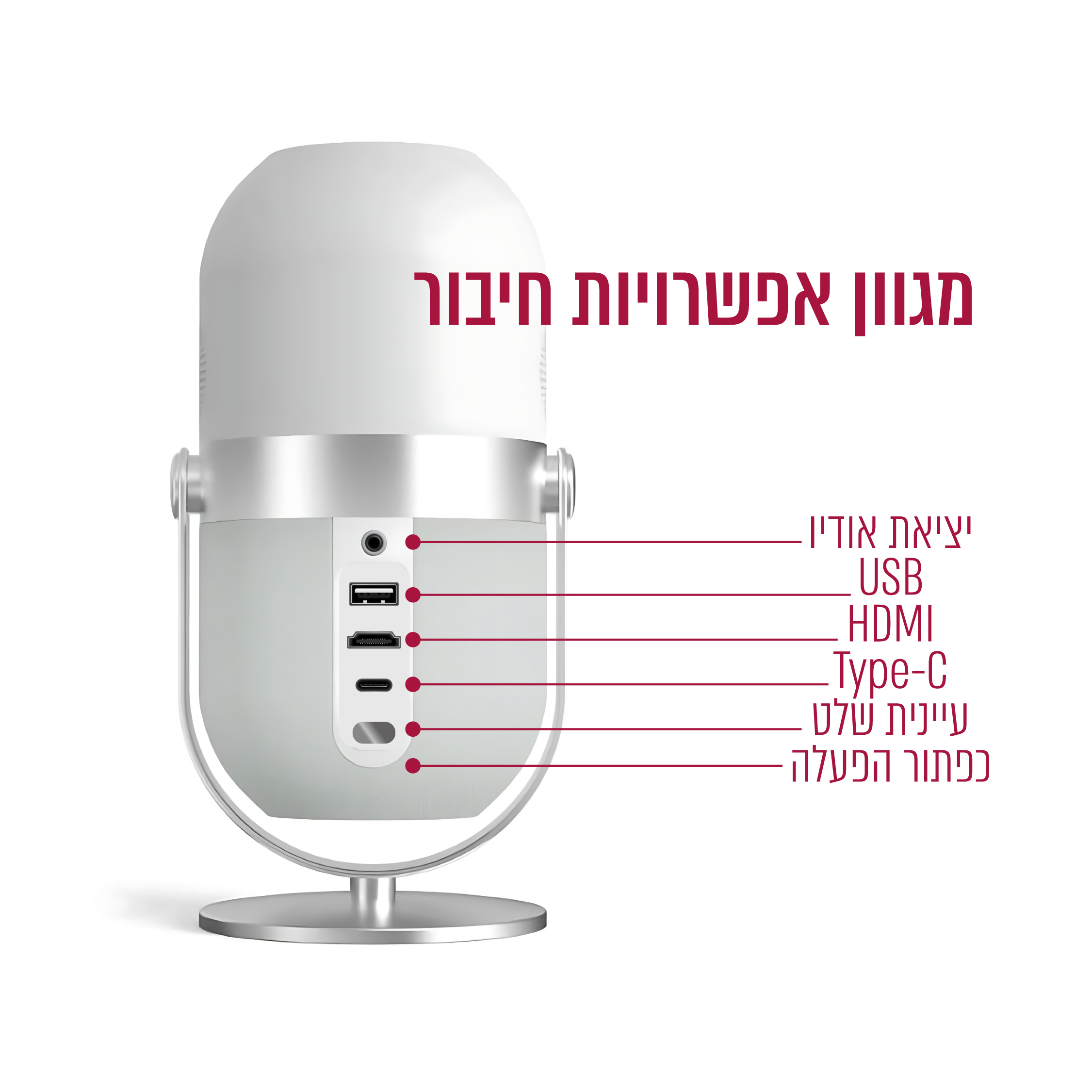 - שידור סאונד Bluetooth, רמקול מובנה, חיבורים HDMI/USB, מסך עד 160 אינץ’