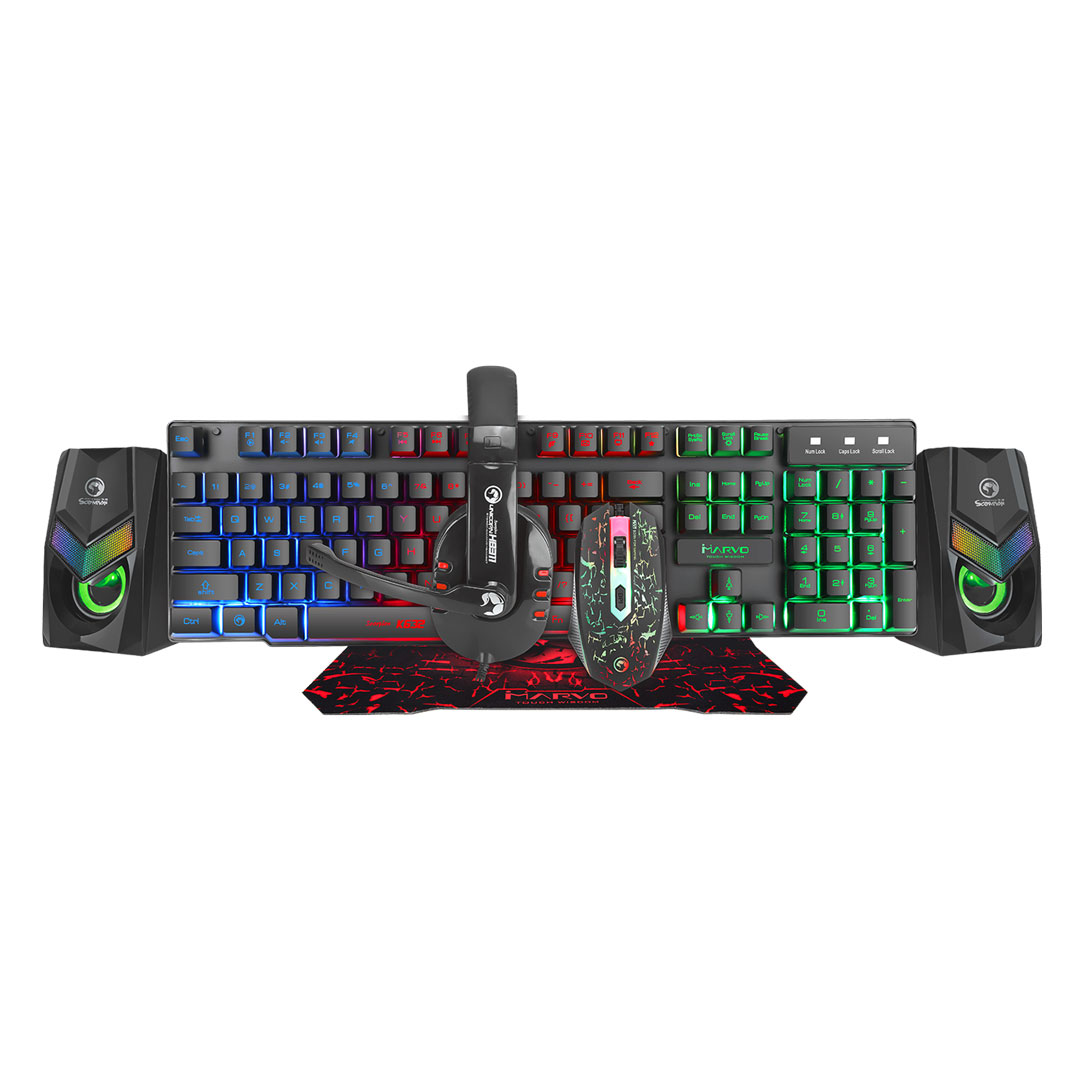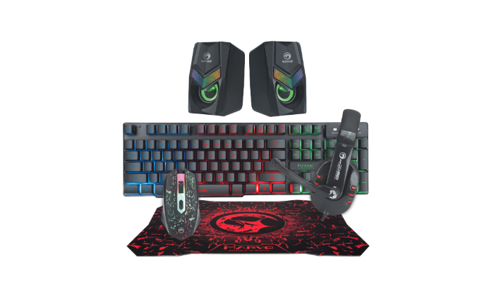 קיט גיימינג הכולל אוזניות פד עכבר מקלדת ורמקולים