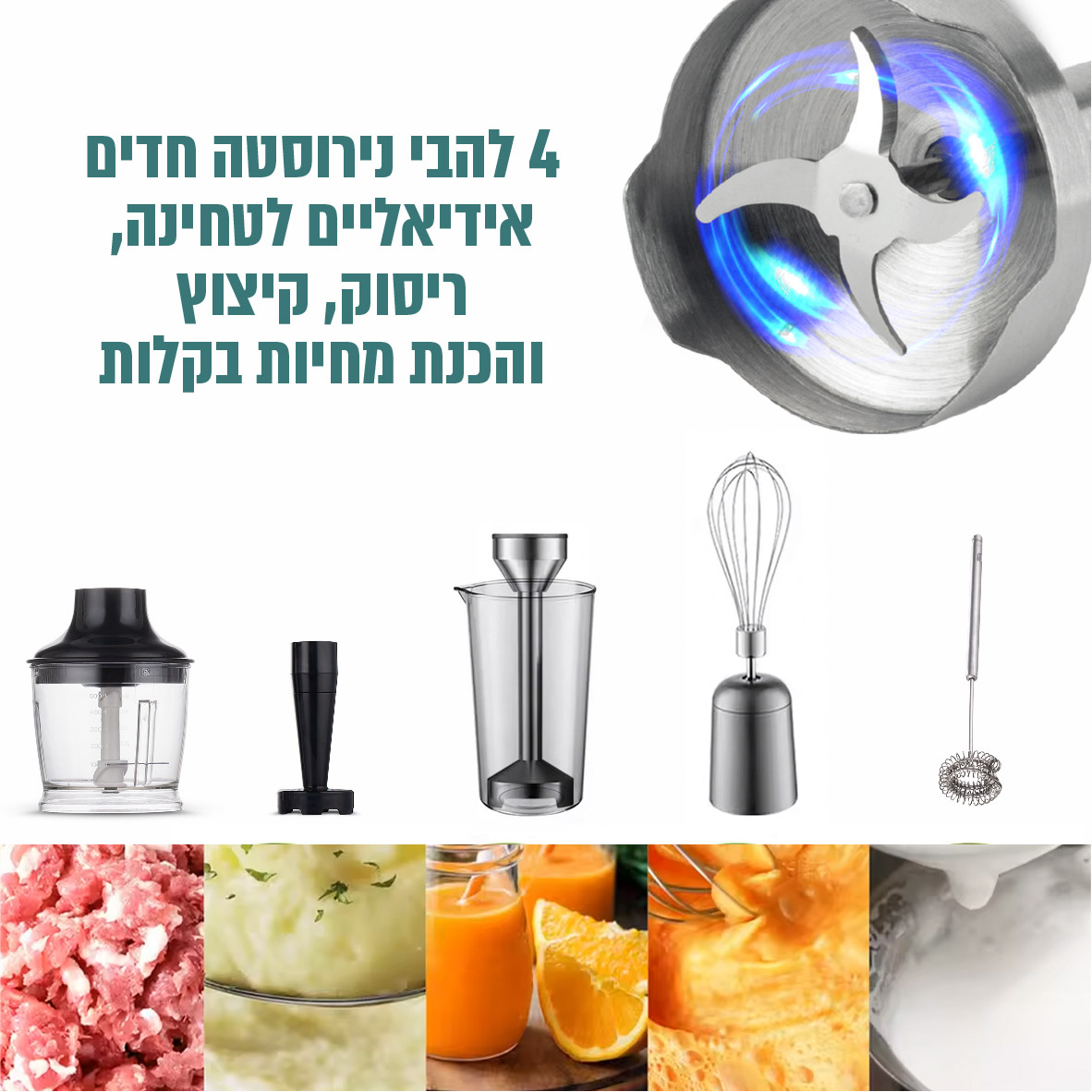 - 4 להבי נירוסטה, אחיזה ארגונומית , טורבו,מהירויות משתנות