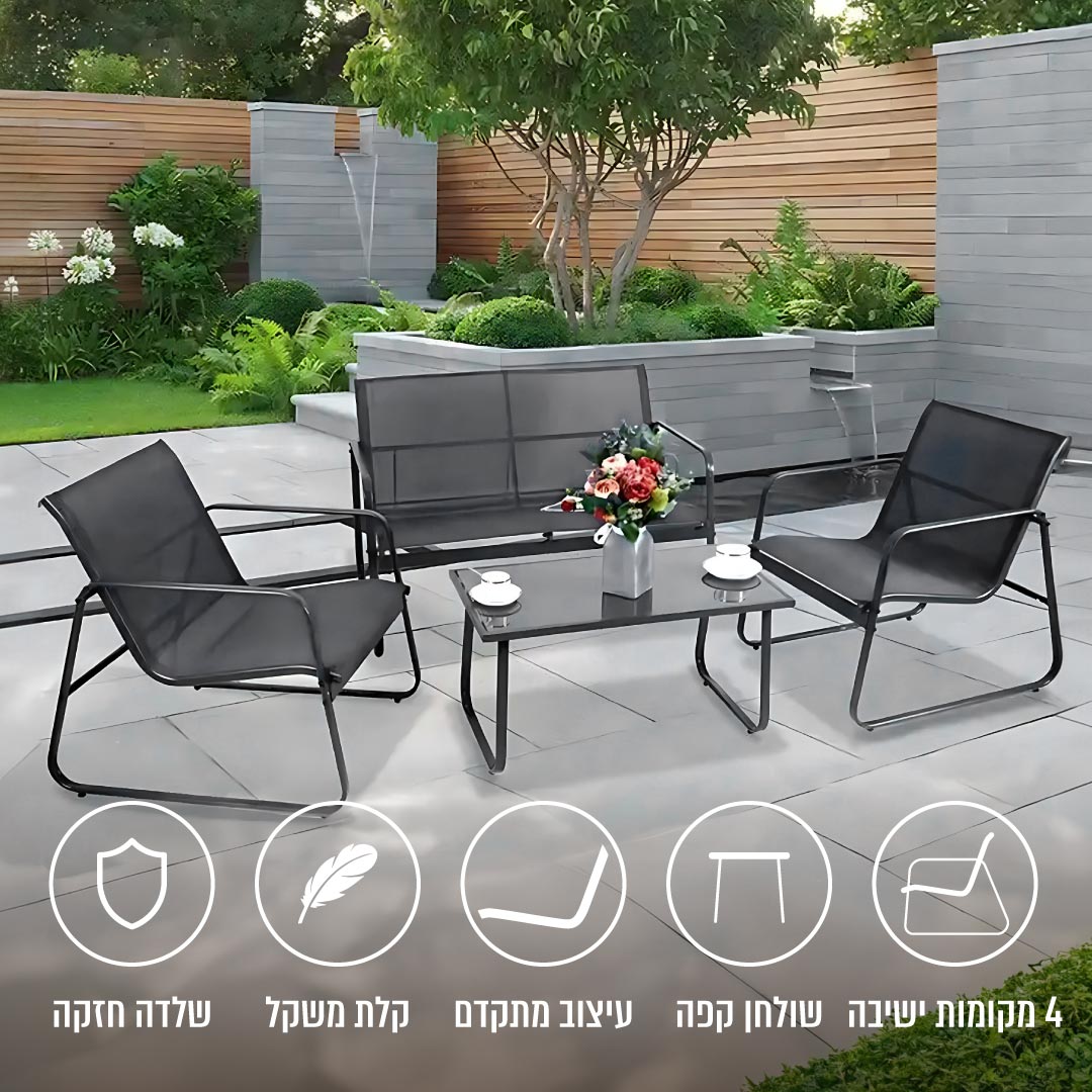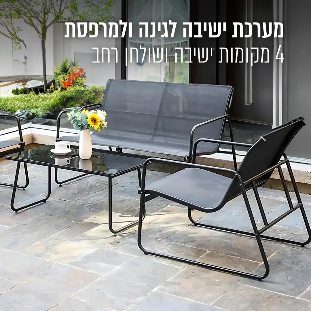 מערכת ישיבה לגינה ולמרפסת 4 מקומות ישיבה ושולחן