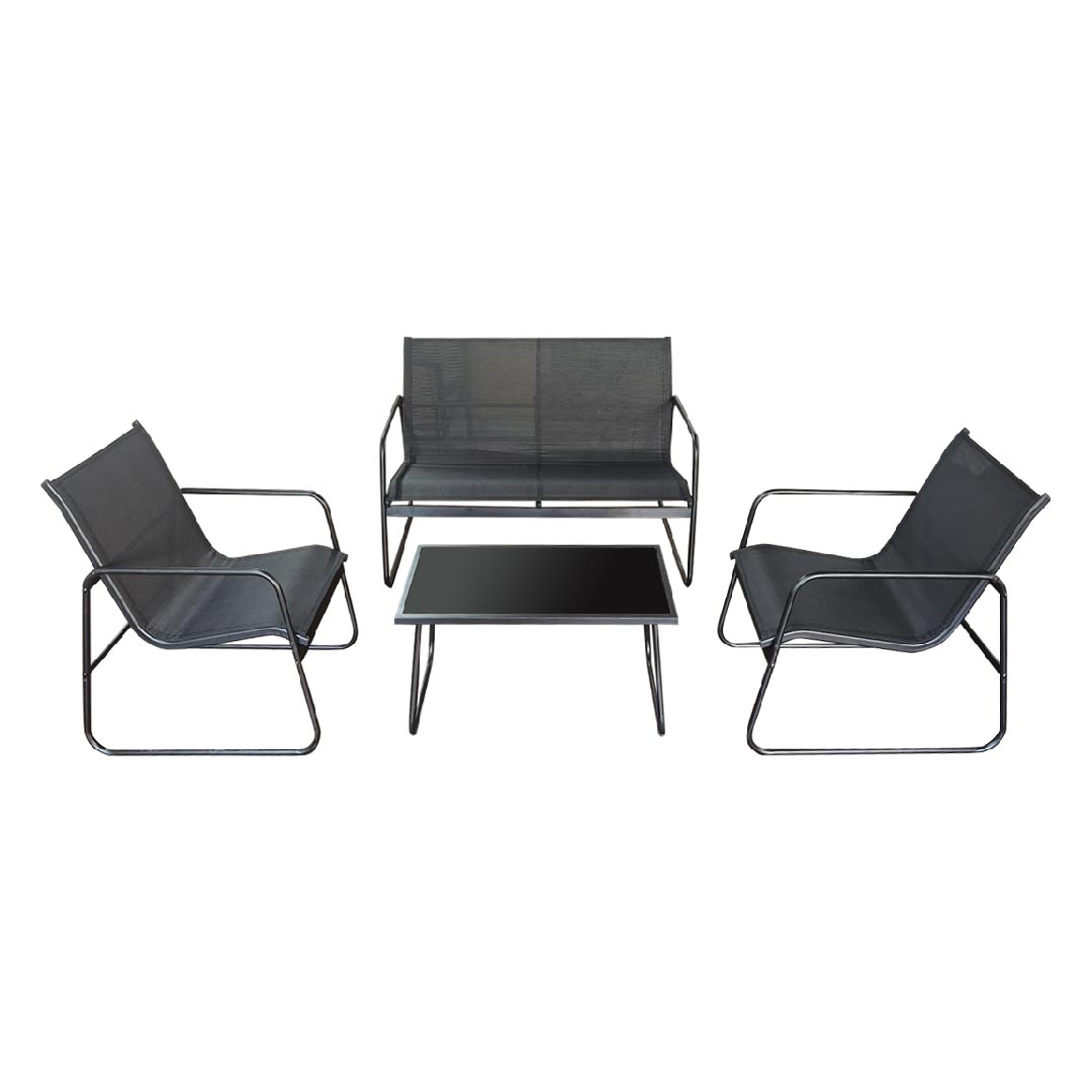 - 2 כיסאות יחיד + ספה זוגית: נוחים ממתכת ובד איכותי ונושם, קלים לניקוי