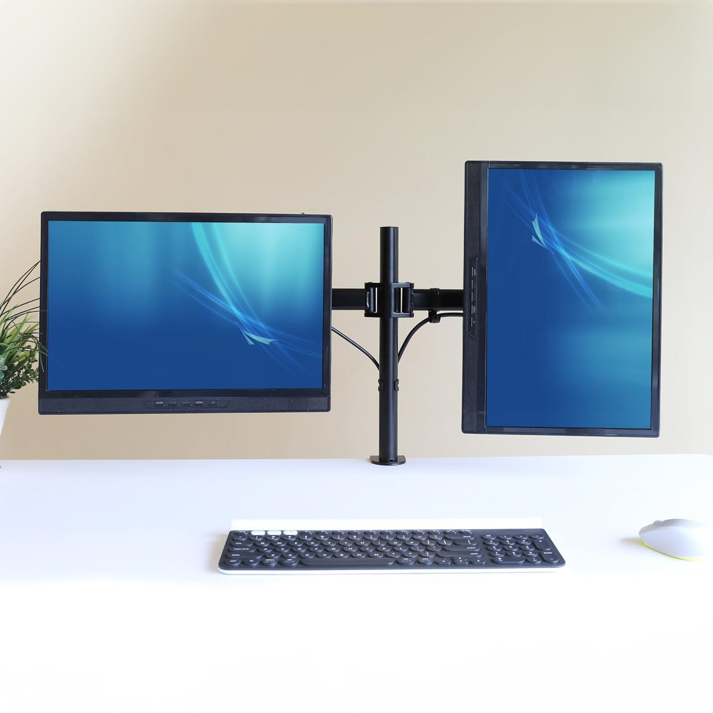 מתקן תלייה ל 2 מסכים עם חיבור שולחני
