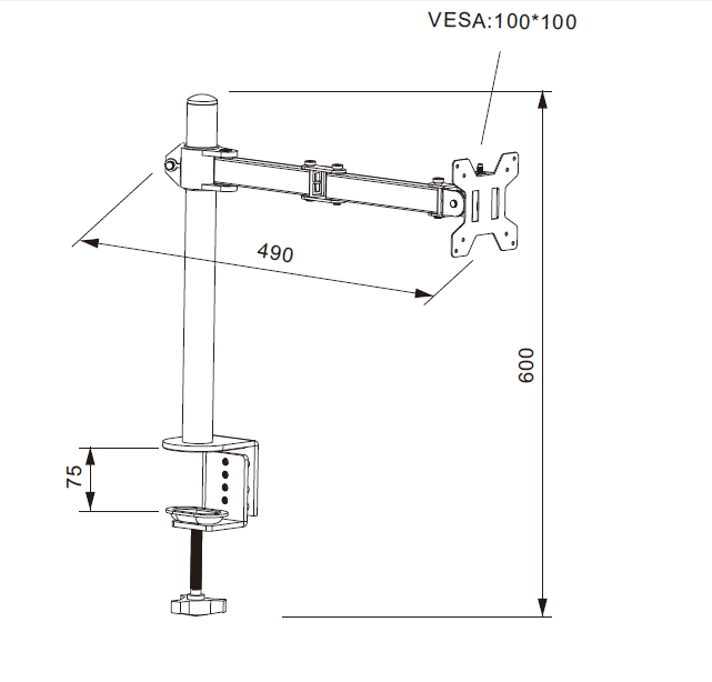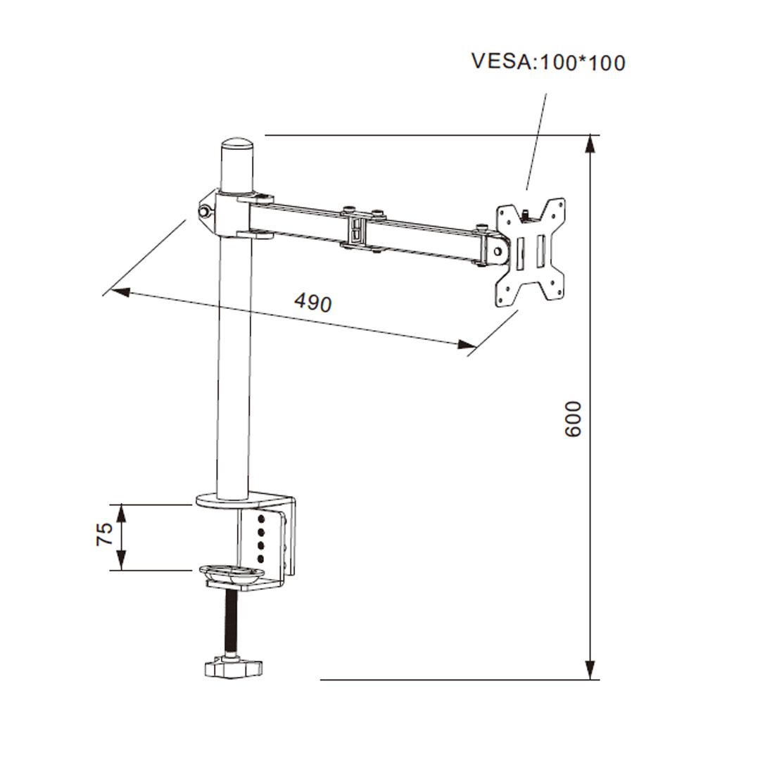 - גודל מסך-"13-27 משקל נשיאה מקסימלי: 9 ק"ג הטייה: °15 ± סיבוב זרוע: °180 סיבוב מסך: °360 מידות מפתח: 100X100 75X75 צבע: שחור