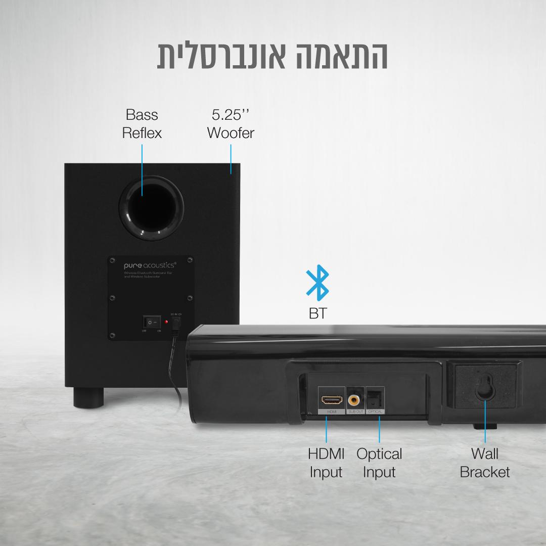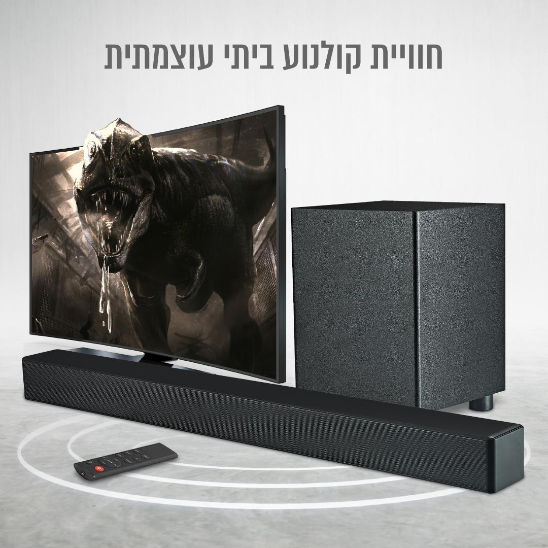 - סאונד בר 2.1 מספק חוויית קולנוע ביתי מרהיבה עם בס עשיר ואפקטים מרתקים הממלאים את החלל בצליל מלא