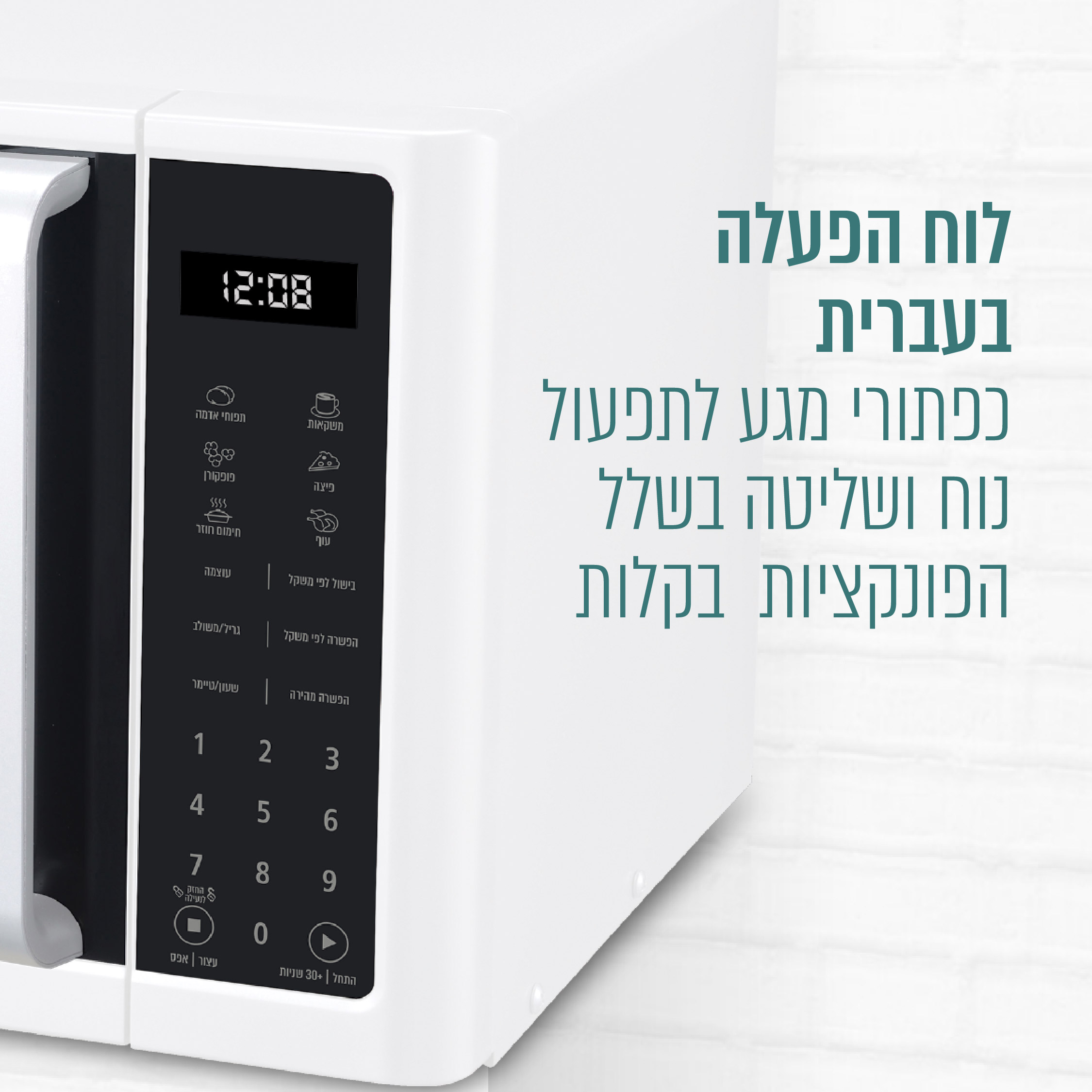 - לוח הפעלה בעברית : עם כפתורי מגע לתפעול נוח ומהיר, שליטה בשלל הפונקציות במיקרוגל בקלות