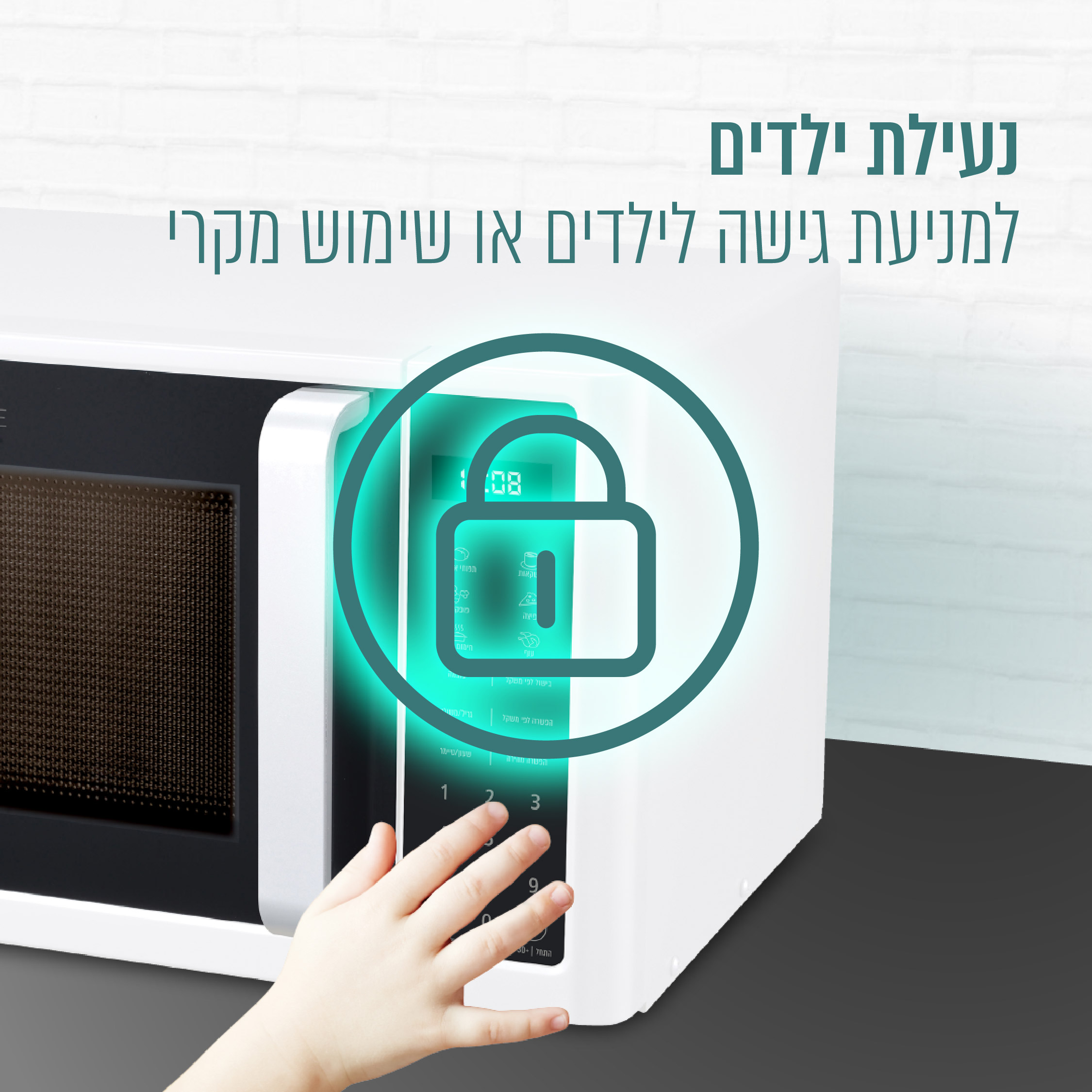 - דלת המיקרוגל: בצבע לבן המעניקה מראה יוקרתי עם ידית פתיחה נוחה ושקטה
