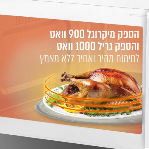 - עוצמתי במיוחד : הספק מיקרוגל 900 וואט והספק גריל 1000 וואט לחימום מהיר ואחיד