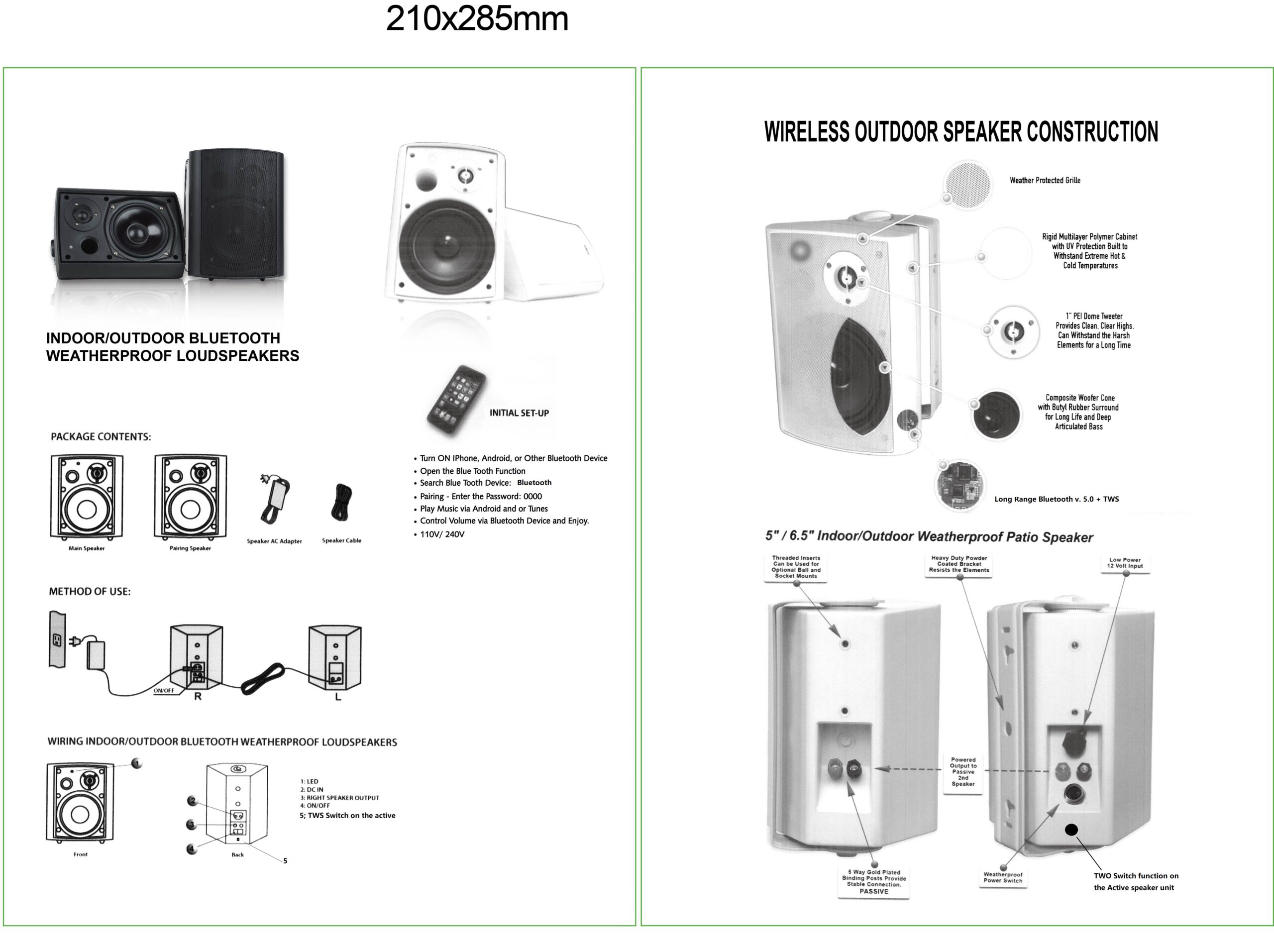 - 2 - Weatherized Outdoor Speakers (1 Active - 1 Passive)