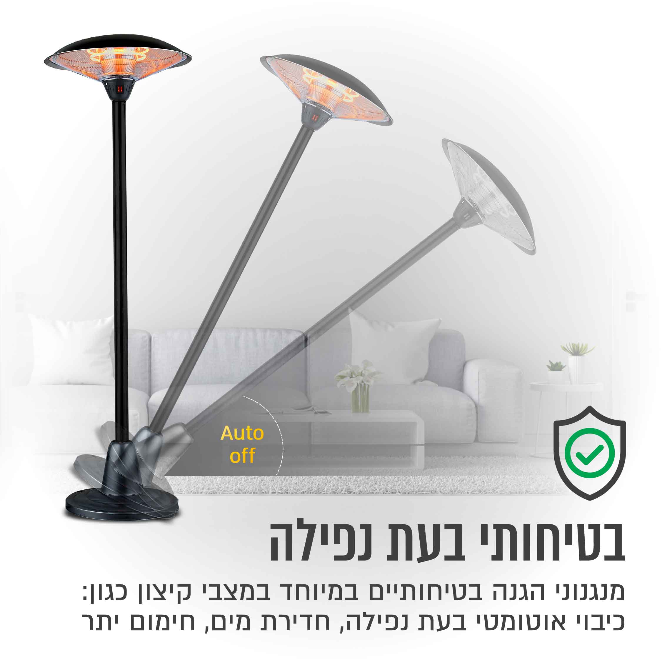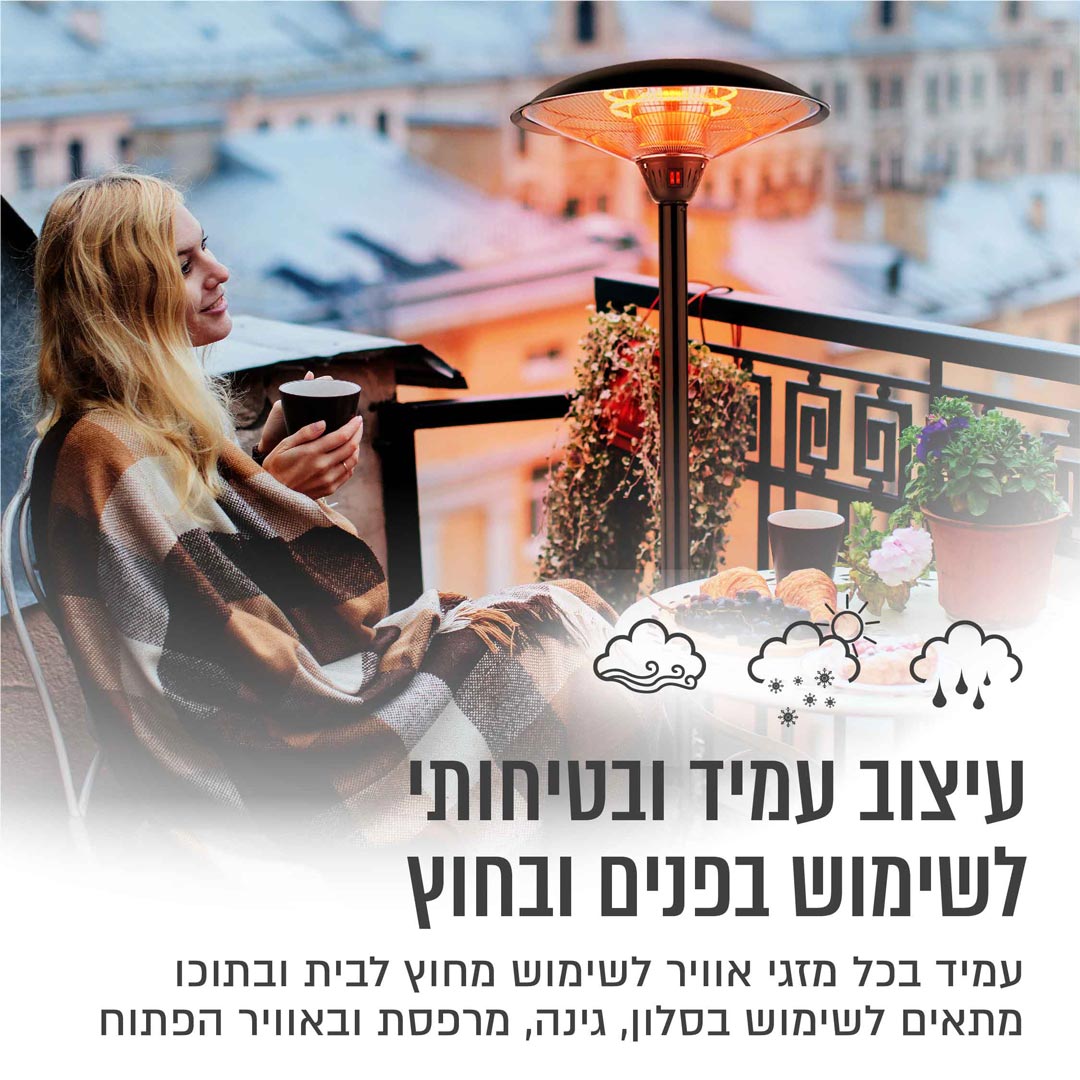 - יציב וגבוה: פטריית החימום מגיעה עם סטנד נירוסטה יציב ובטיחותי בגובה 2.1 מטר
