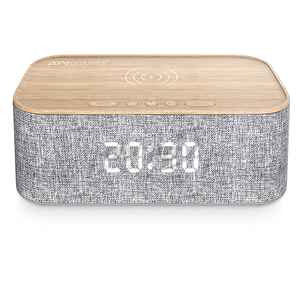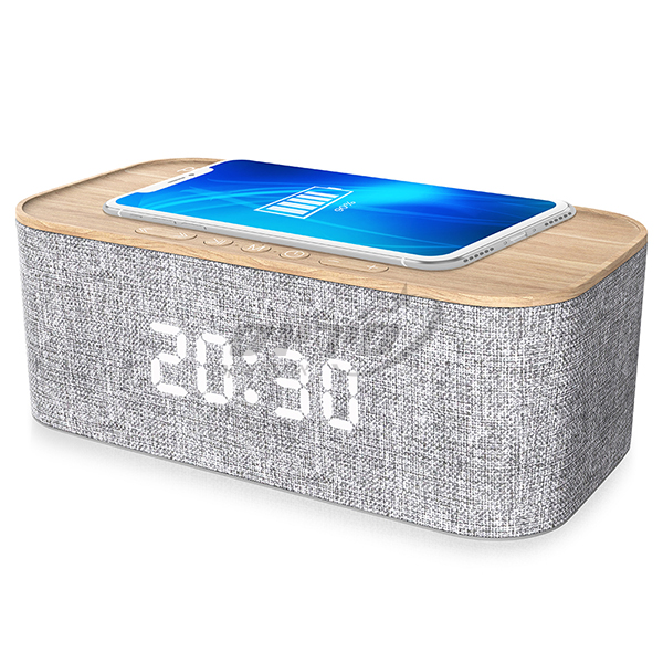 רמקול סטריאו עם שעון מעורר ומשטח טעינה אלחוטית