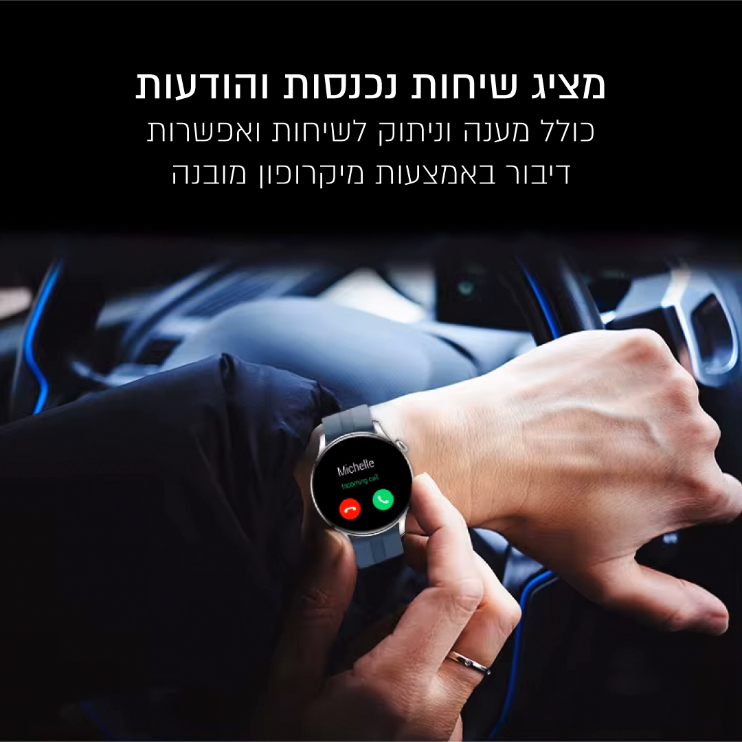 - מציג שיחות נכנסות והודעות כולל מענה וניתוק לשיחות ואפשרות דיבור באמצעות מיקרופון מובנה