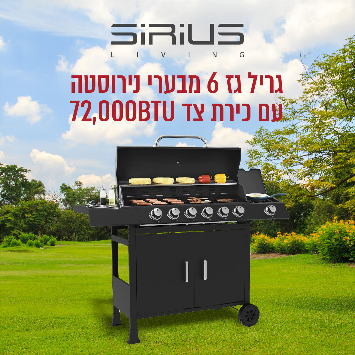 גריל גז 6 מבערי נירוסטה עם כירת צד 75,000BTU