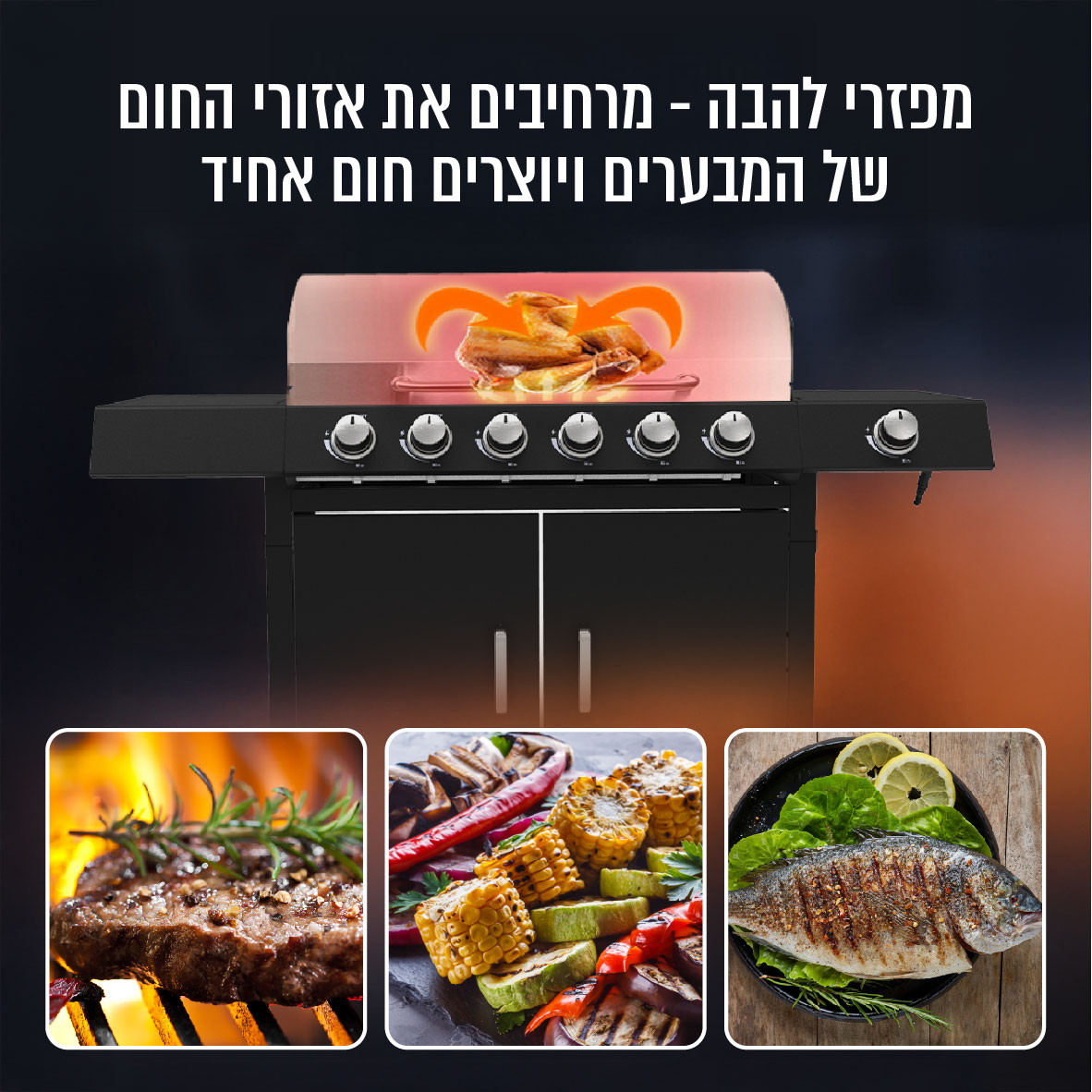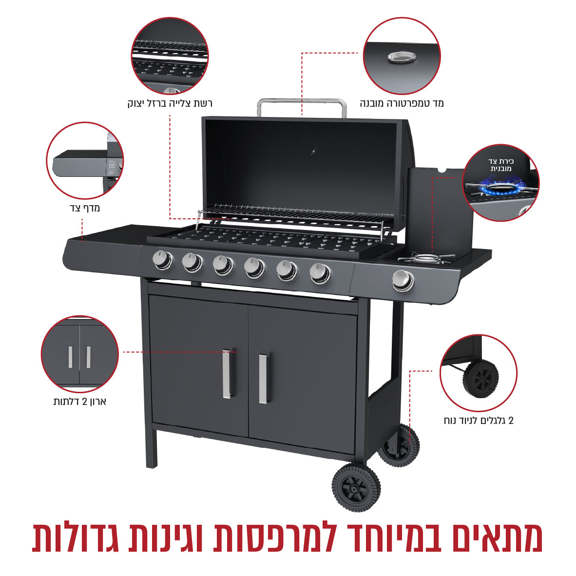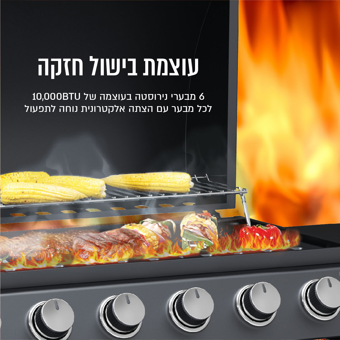 • בעל 6 מבערים עוצמתיים עם מערכת המאפשרת צלייה צמודה