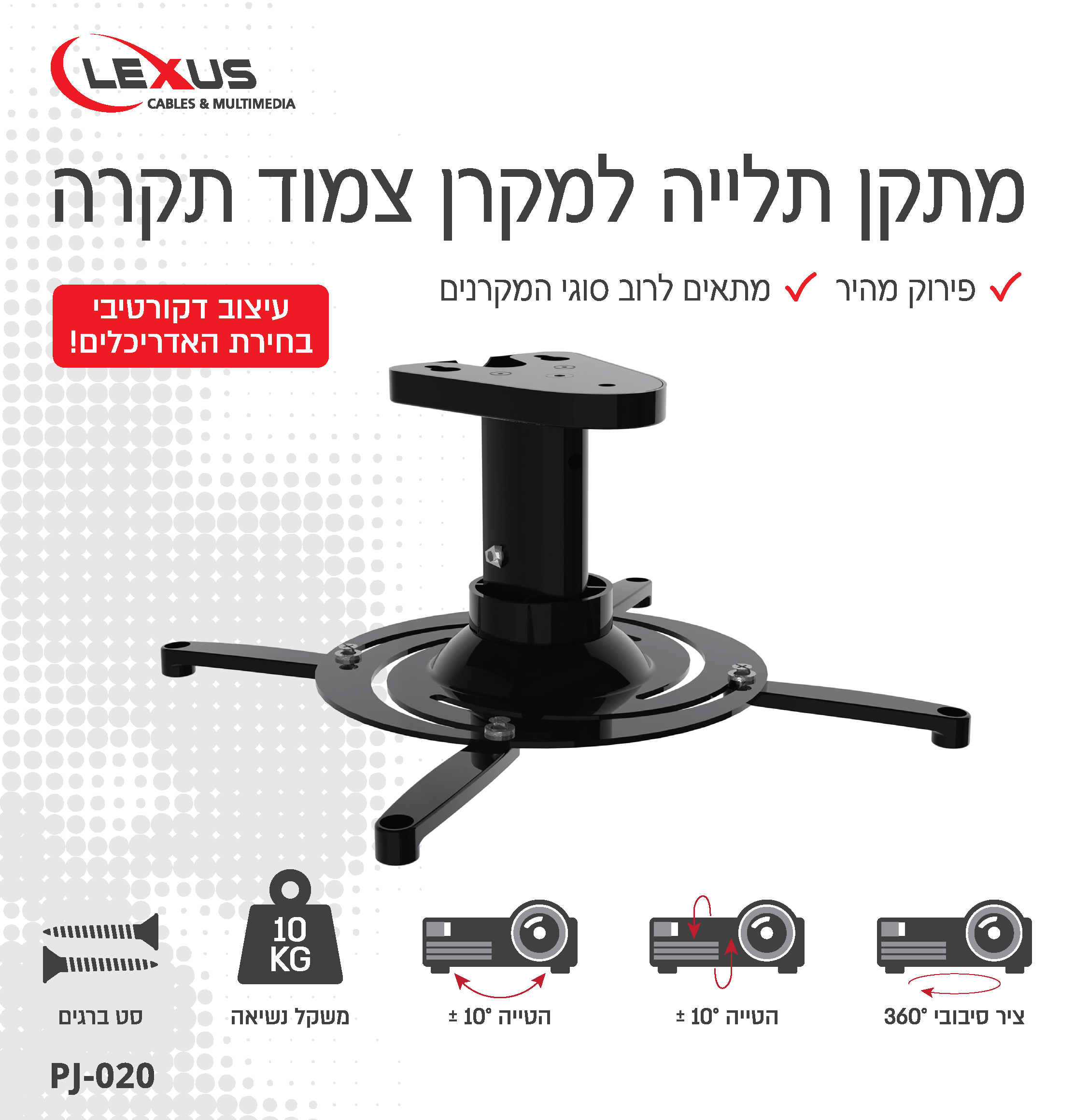 - בטיחות – בנוי ממתכת חזקה, עמידה ויציבה ביותר המאפשרת את אחיזת המקרן באופן בטיחותי