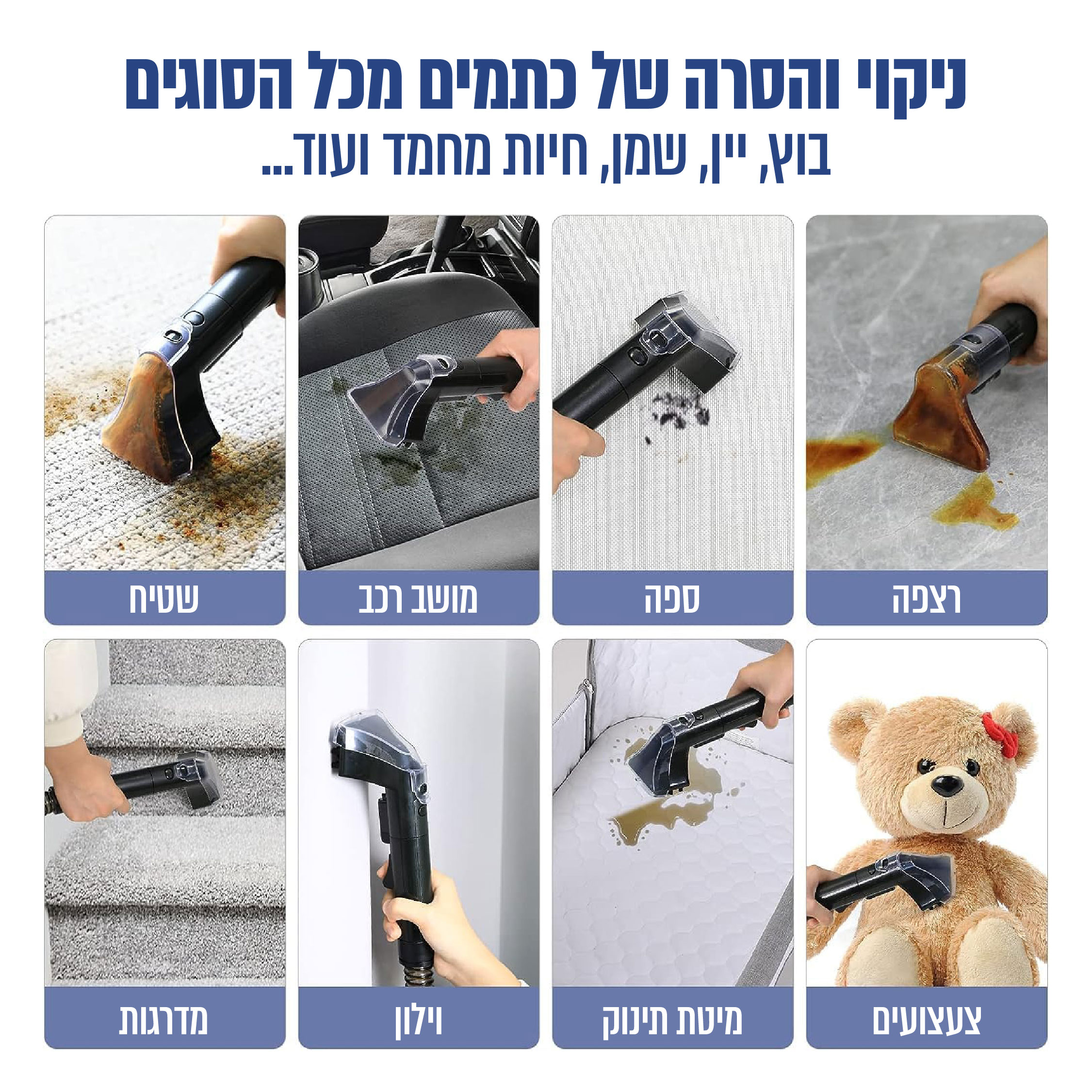 - מכונת ניקוי שואבת ושוטפת להסרת לכלוך וכתמים ביעילות
