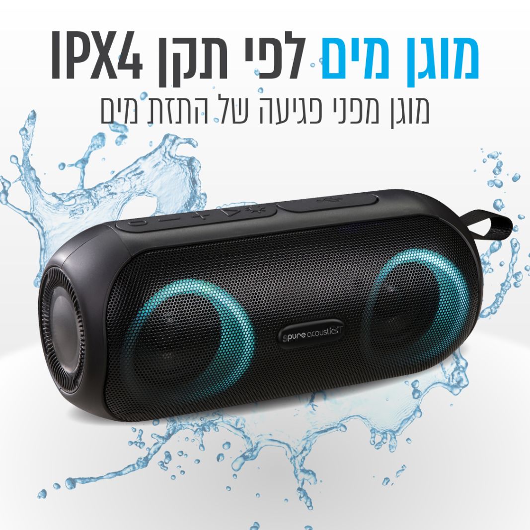 - מוגן מים – לפי תקן IPX4 תאורת RGB – בצבע משתנה המגיבה לצליל ולקצב המוזיקה