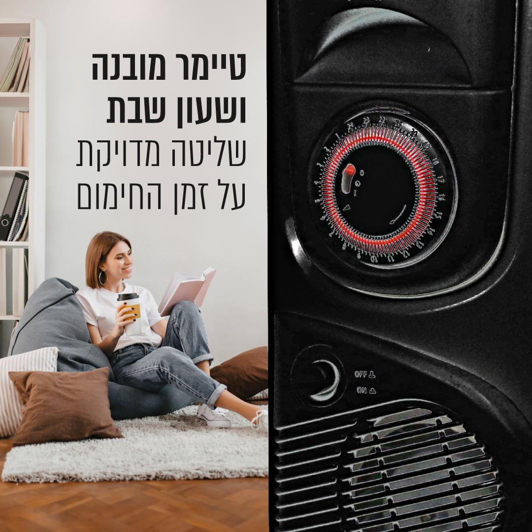 רדיאטור 11 צלעות שחור 2500W עם פונקציית טורבו ושעון שבת