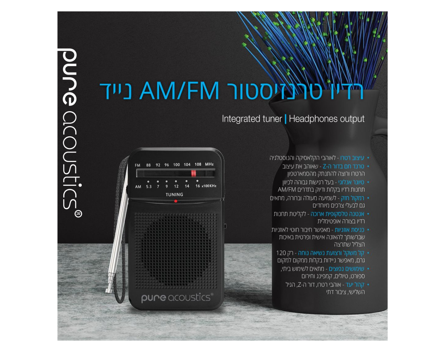 - טיונר אנלוגי – בעל רגישות גבוהה לכיוון תחנות רדיו בקלות ודיוק בתדרים AM/FM