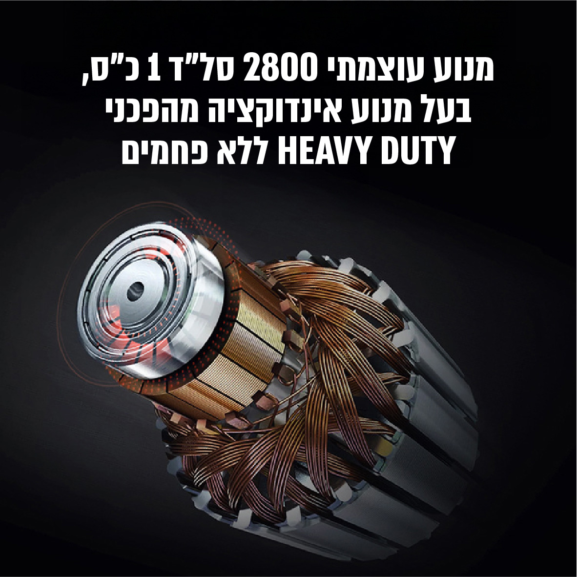 - מנוע עוצמתי | 1 כ"ס | HEAVY DUTY – מנוע אינדוקציה מהפכני, ללא פחמים, המפיק 2800 סל"ד לביצועים חדים וחזקים במיוחד.