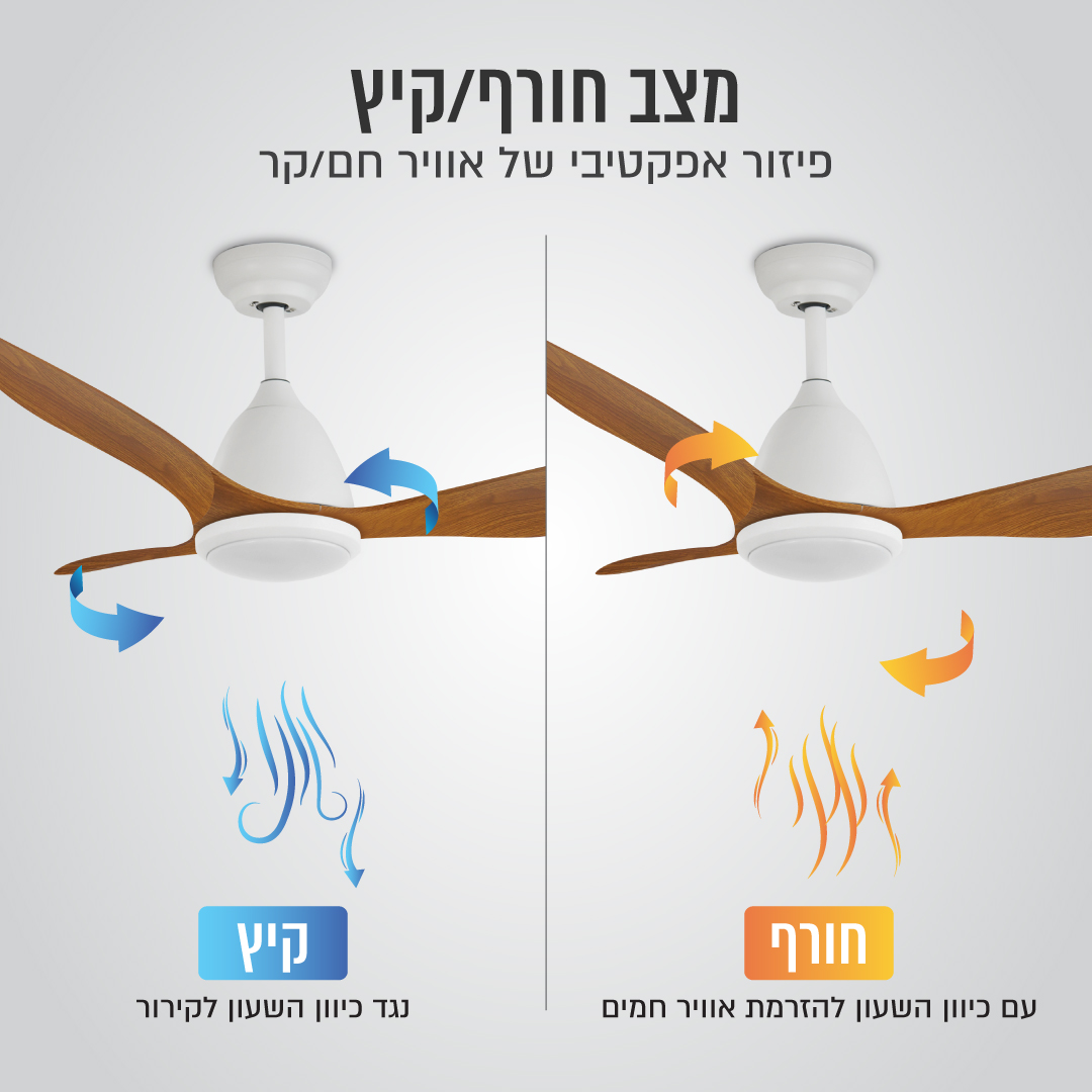 - ובכך תורמים לפיזור אפקטיבי של אוויר חם שנמצא למעלה אל החדר כלפי מטה