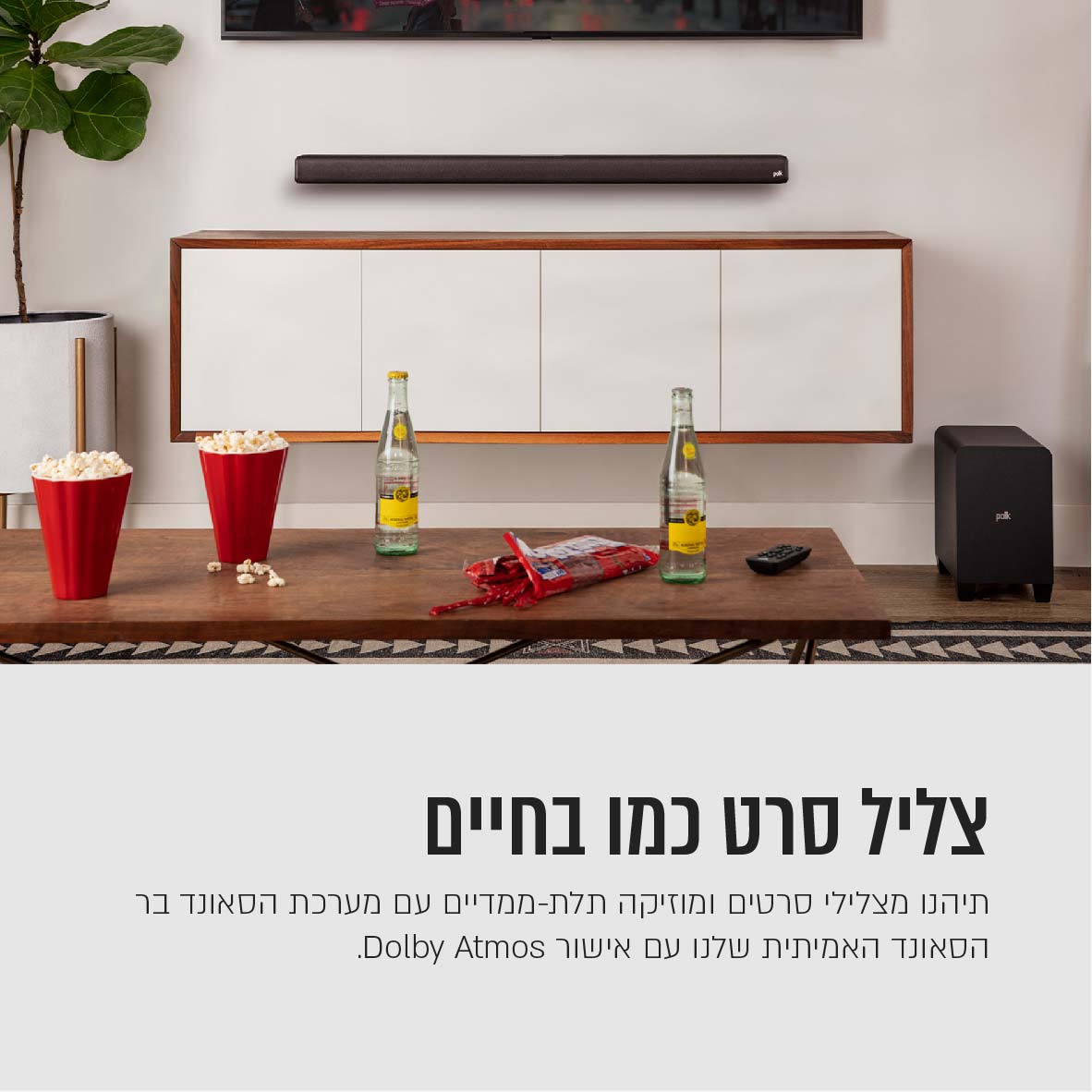 - מקרן קול תומך Dolby Atmos עם רמקול סאב-וופר עוצמתי נפרד בחיבור אלחוטי ללא צורך בכבלים נוספים