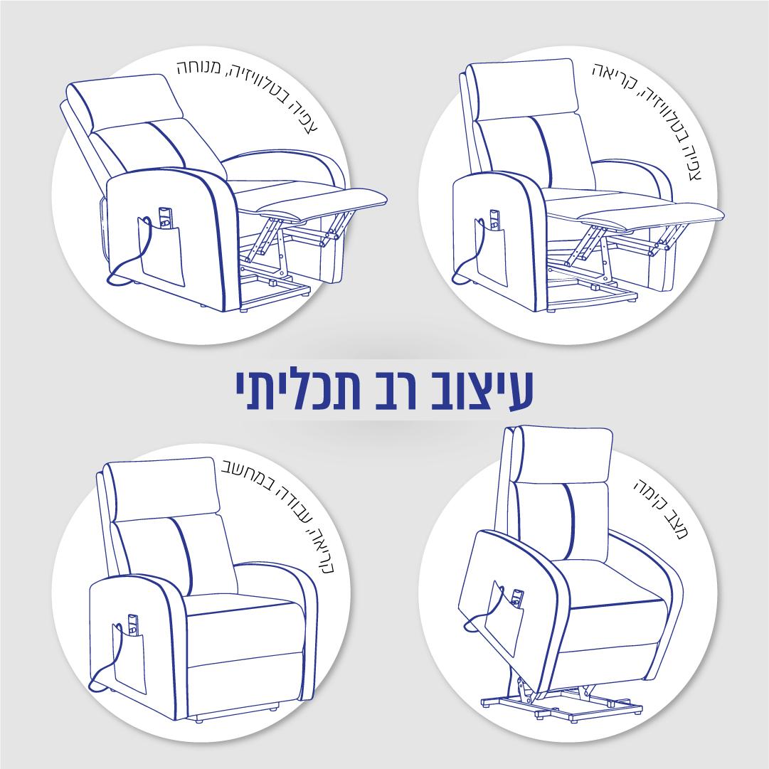 - מצב קימה העוזר לעבור מישיבה לעמידה בקלות: מנגנון קימה מיוחד המיועד להקל על המעבר מישיבה לעמידה