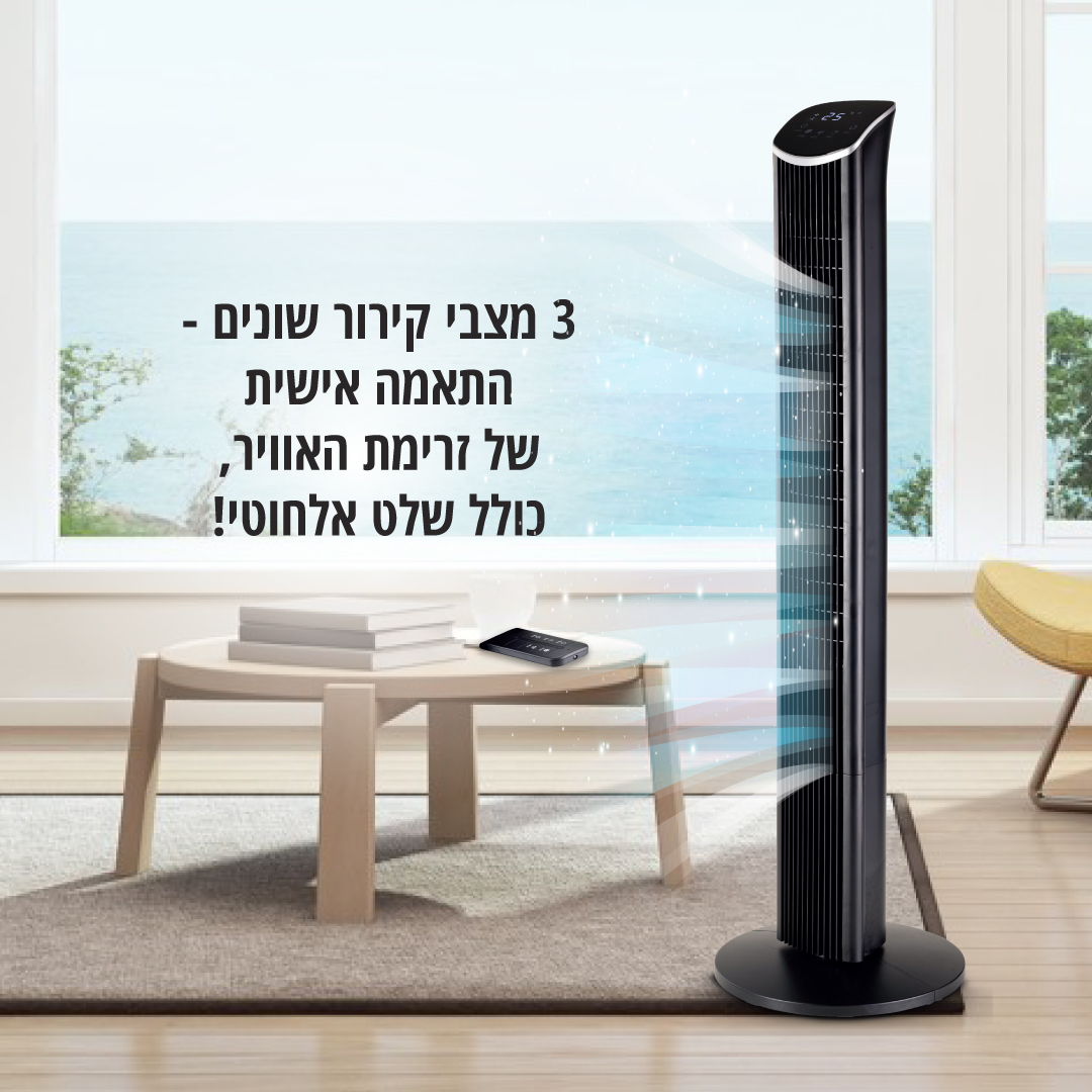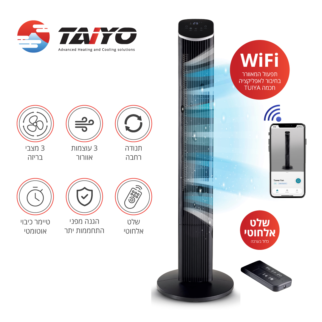 - מאוורר חכם עם שליטה ב-WiFi דרך אפליקציית TUYA, כולל מסך טאצ' LED ברור