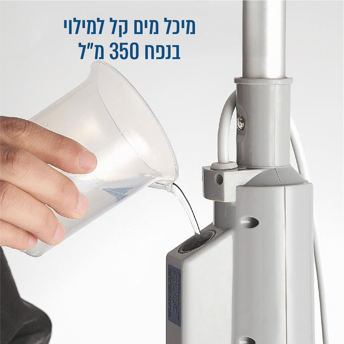 • 15 דקות פעולה רציפה – ניקיון שטח גדול במכה אחת: מיכל מים בנפח 350 מ"ל – מספיק לניקוי כמה חדרים ללא מילוי חוזר