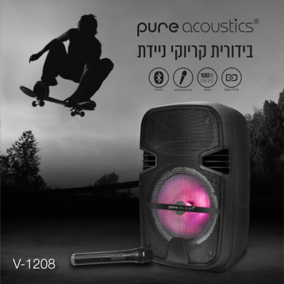 בידורית קריוקי ניידת 1100W עם מיקרופון אלחוטי