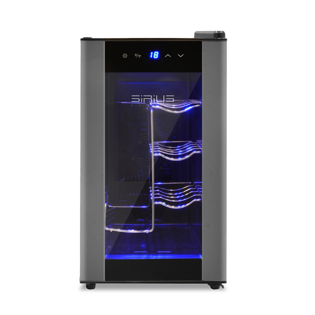 • מקרר יין ידידותי לסביבה עם חיסכון באנרגיה המשלב טכנולוגיית קירור יין תרמו אלקטרית שקטה במיוחד המתאימה למיקום גם בחדרים פנימיים