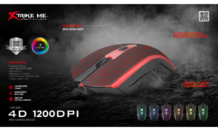 - תאורת RGB מתחלפת בעיצוב עור נחש מתחלפת בלחיצת כפתור ל-7 צבעים מתחלפים החלפה בין 3 מהירויות שונות להתאמה נוחה 1200-1000-800 DPI אורך חיים 3 מיליון לחיצות עיצוב ארגונומי חזק – עם התחשבות בכף היד וגריפים לנוחות מקסימלית בצד האגודל
